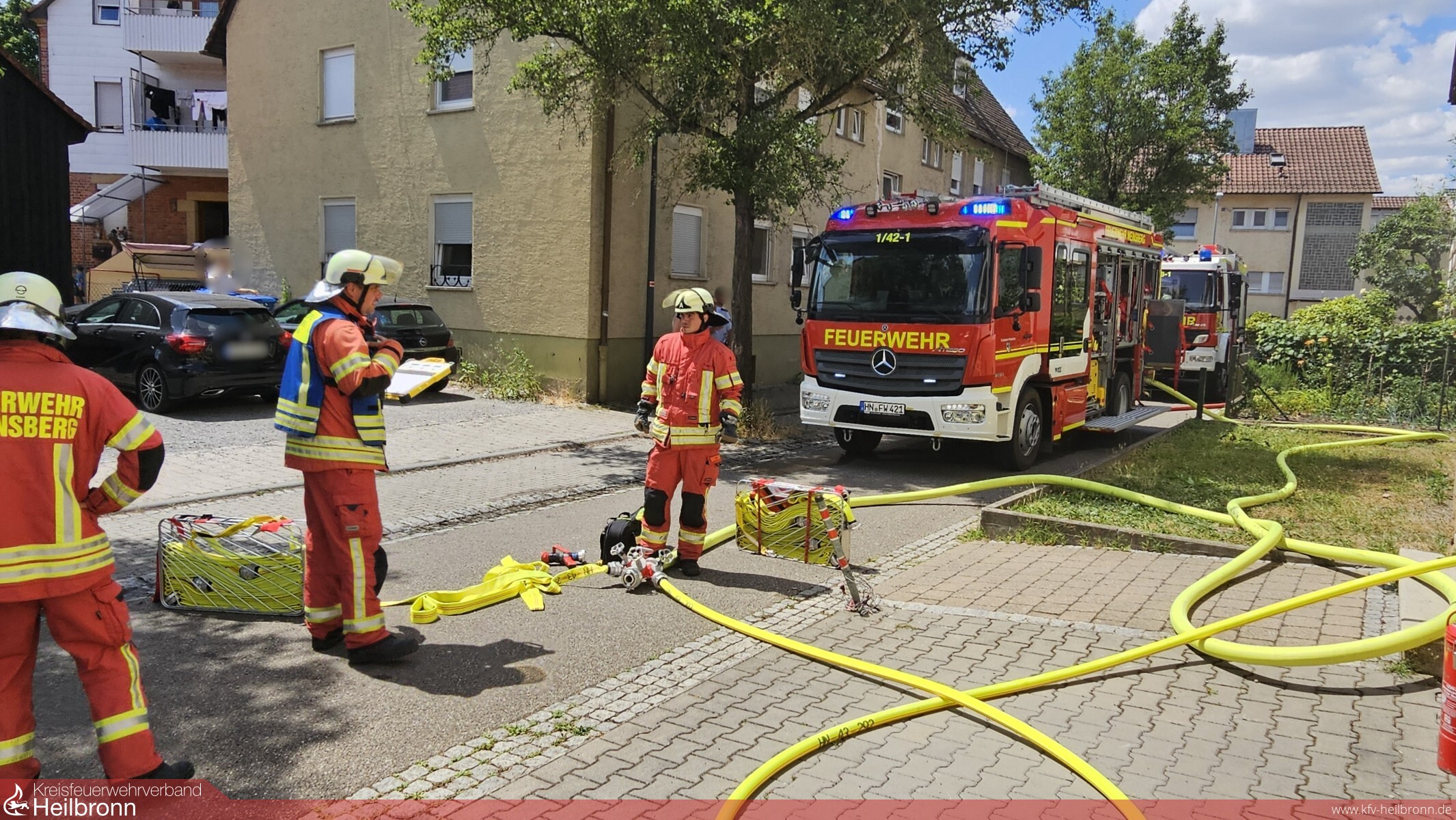 Die Feuerwehr Weinsberg wurde am Freitag, 04.07.2025 um 13:25 Uhr mit dem Alarmstichwort „Zimmerbrand“ in die Schillerstraße gerufen. In einer Wohnung im Erdgeschoss eines Mehrfamilienhauses geriet eine Spülmaschine in Brand.