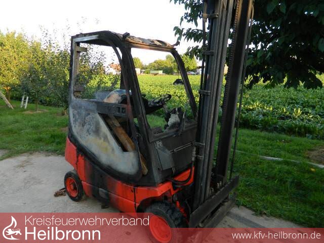 Erste Erkundungen an der Einsatzstelle ergaben, dass ein Gabelstapler aus noch nicht geklärter Ursache in Brand geraten war.