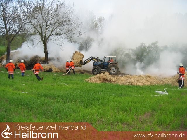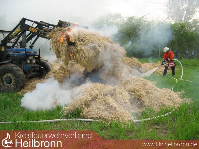 Das Stroh wurde mit Hilfe eines Frontladers auseinander gezogen und abgelöscht.