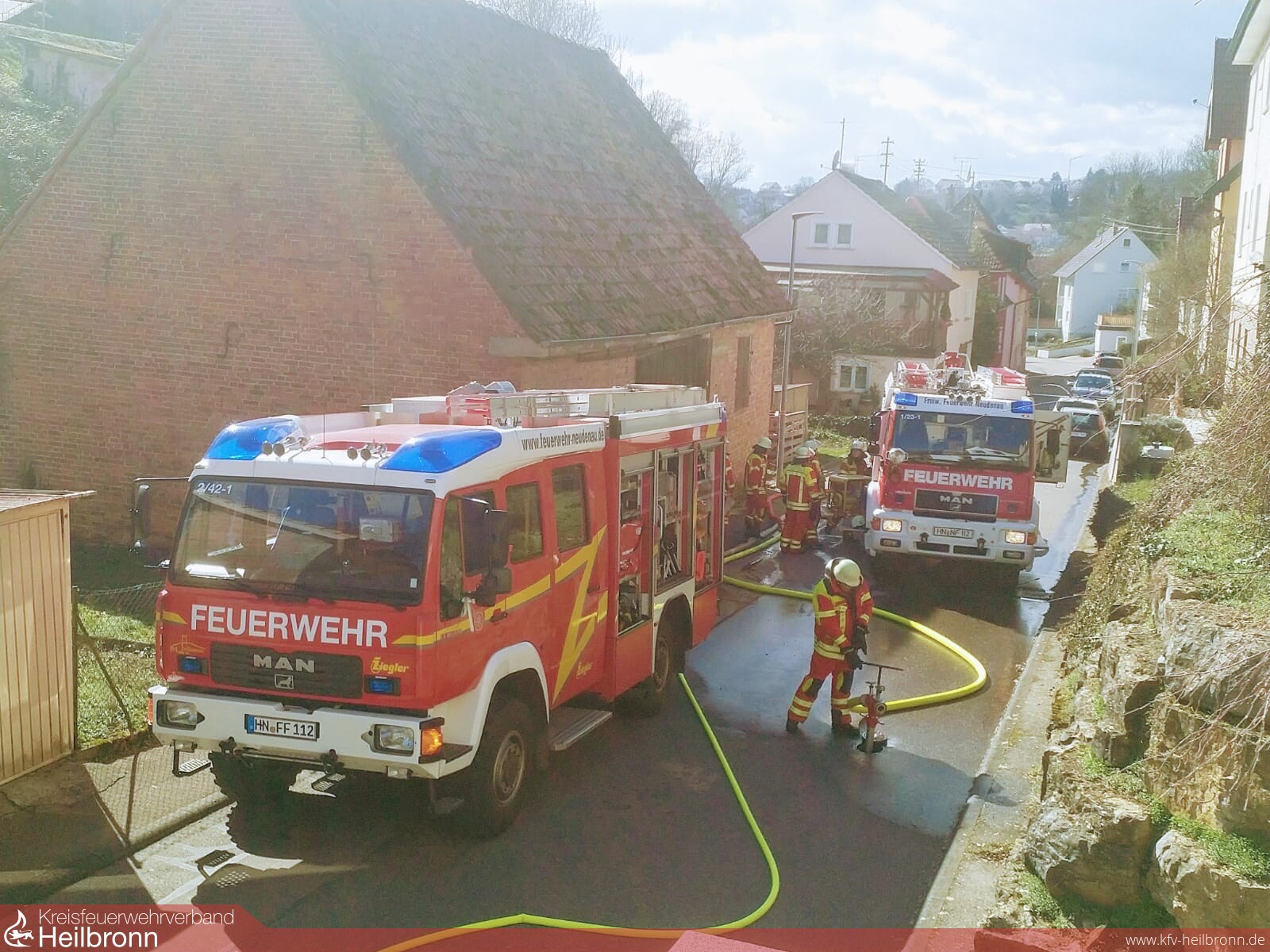 Mit dem Alarmstichwort „Objektalarm“ wurden die Einsatzabteilungen Neudenau und Herbolzheim in die Kreßbachstraße nach Herbolzheim alarmiert. Eine aufmerksame Nachbarin vernahm Brandgeruch sowie das akustische Signal eines Rauchmelders und alarmierte aufgrund dessen die Feuerwehr über 112.