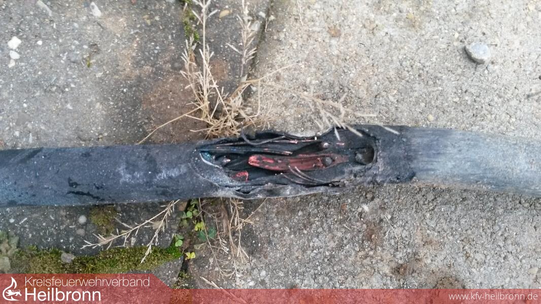 Der eingetroffene Stromversorger hat dann die Einsatzstelle übernommen und zur Fehlerbehebung mit Grabearbeiten begonnen. Wie sich herausstellte, ist die Zuleitung an der Gebäudewand, vermutlich durch eine Bodenabsenkung abgeknickt und hat den Kurzschluss verursacht.