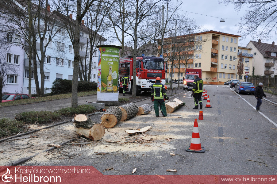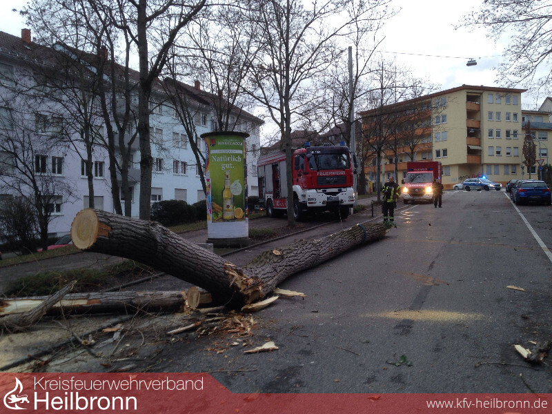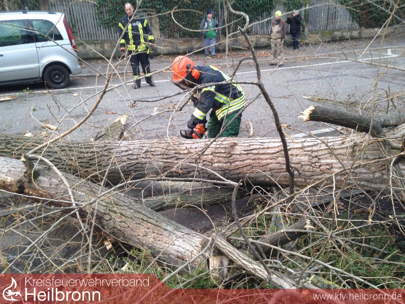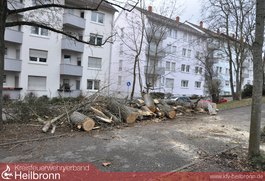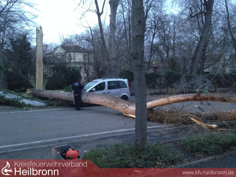 Am BUGA-Gelände fiel ein 300 Meter langer Bauzaun um. Die Rosenbergstraße musste zeitweise gesperrt werden, da ein massiver Baum quer über die Straße stürzte und hierbei ein geparktes Fahrzeug unter sich begrub.