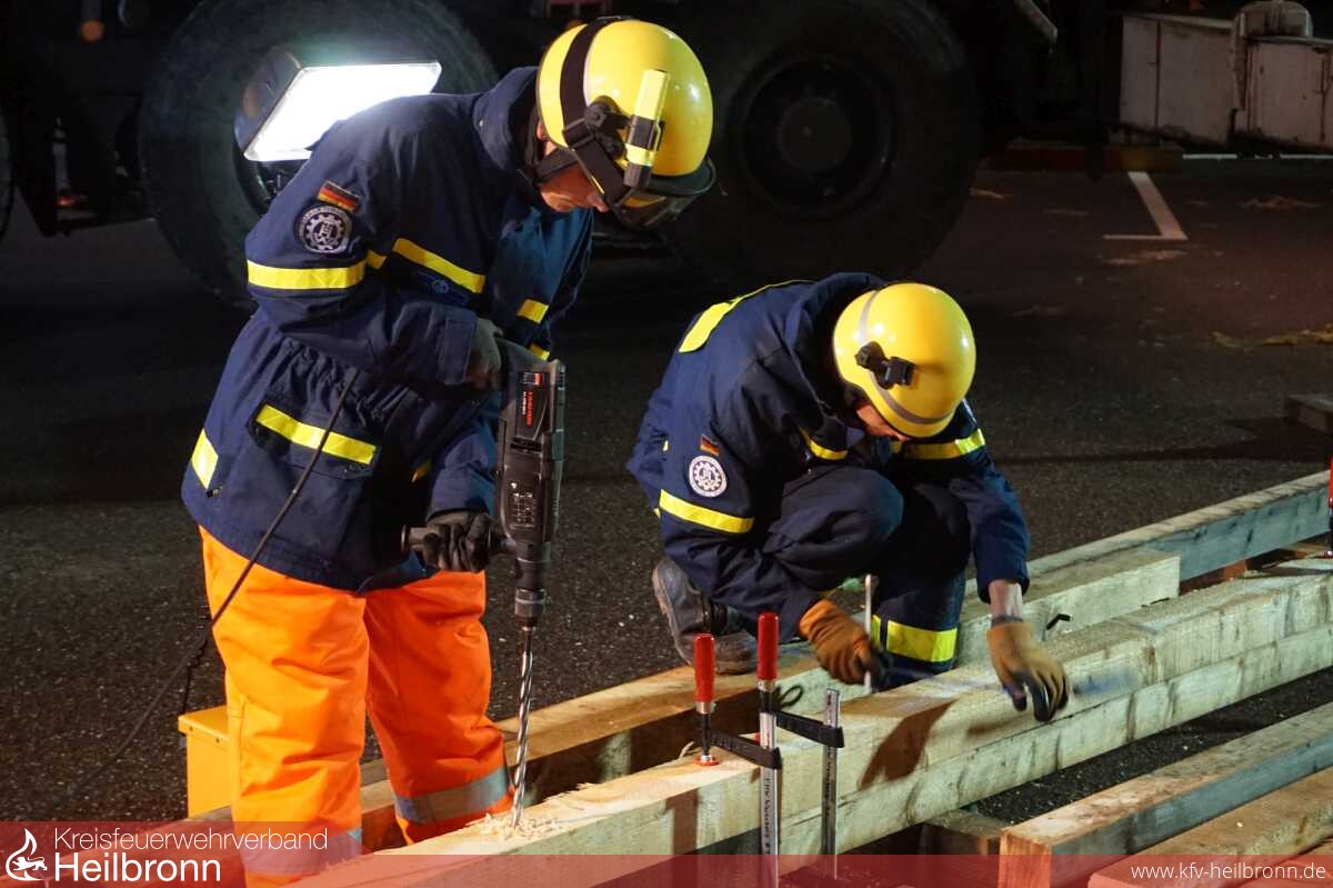 Im Einsatz waren 15 Helfer aus Weinsberg mit den Fahrzeugen MTW-Zugtrupp, GKW1 mit Anhänger EGS, MLW4 mit Lichtmast Anhänger, Lima-KW und Kipper.