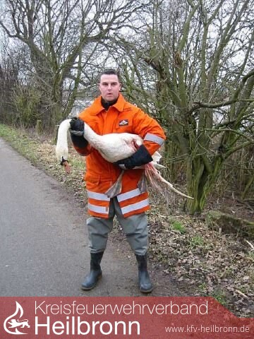 Im Uferbereich des Neckars befand sich ein verletzter Schwan. Das Tier wurde von der Feuerwehr Neckarsulm unter Einsatz des MZBs eingefangen und einem Tierarzt übergeben.
