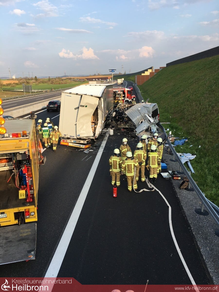 Zu einem tragischen Unfall musste die Feuerwehr gegen 17.45 Uhr auf die Autobahn 6 zwischen den Anschlussstellen Bad Rappenau und Heilbronn-Untereisesheim ausrücken. Der Fahrer eines Wohnmobils hatte vermutlich das Stauende übersehen und krachte in das Heck eines Lkw. Bei dem Aufprall wurde der Camper völlig zerstört. Der 57-Jährige konnte von den Einsatzkräften nur noch tot geborgen werden.