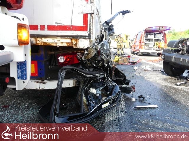 Hierbei übersah er offenbar ein Stauende und prallte mit großer Wucht gegen das Heck eines bereits stehenden Sattelzugs.
