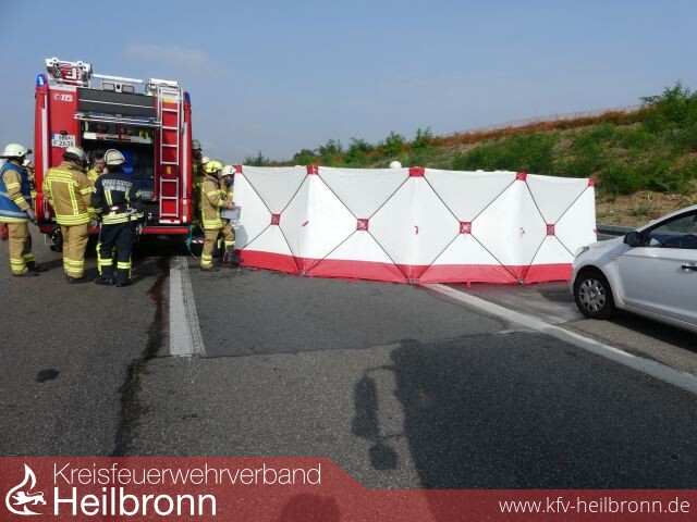 Kurz vor 10.00 Uhr ereignete sich ein tödlicher Verkehrsunfall auf der Autobahn A 6 in Fahrtrichtung Mannheim. Ein 38-Jähriger fuhr mit seinem Jeep Wrangler zwischen den Anschlussstellen Untereisesheim und Bad Rappenau auf Höhe des Gewerbegebietes „Böllinger Höfe“.