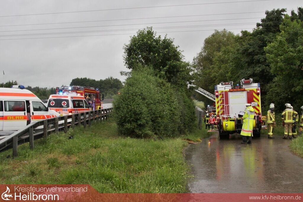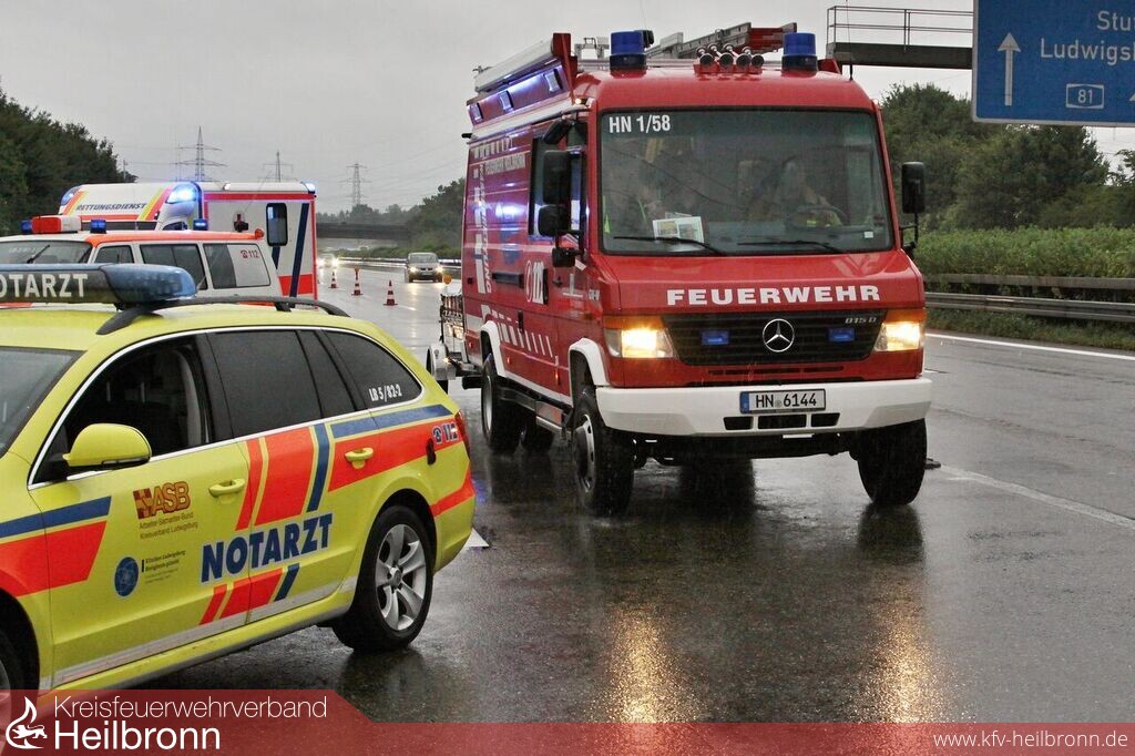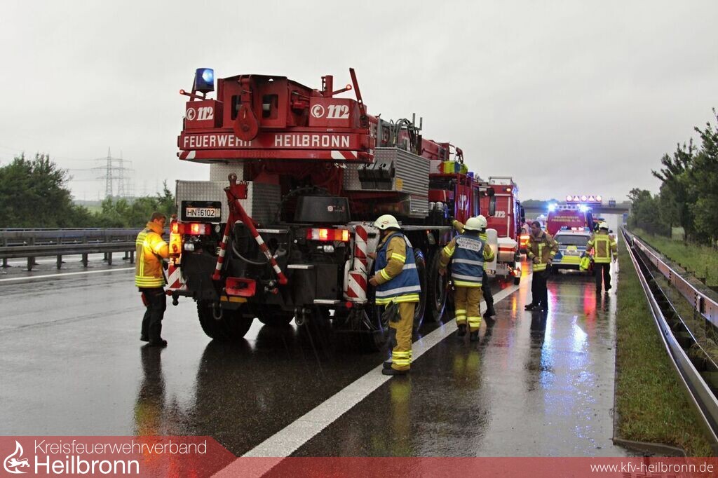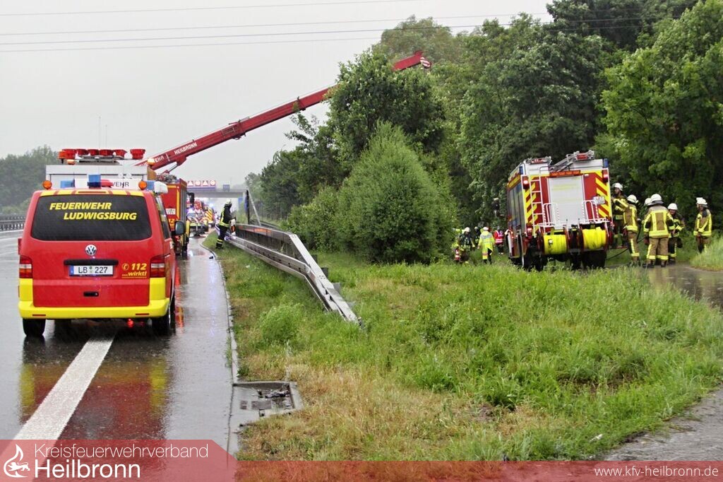 Am Sonntag, 4. Juni wurde die Feuerwehr um 05.57 Uhr von der Integrierten Leitstelle Ludwigsburg mit dem Feuerwehrkran auf die A 81 kurz nach der Anschlussstelle Pleidelsheim in Fahrtrichtung Heilbronn alarmiert.
