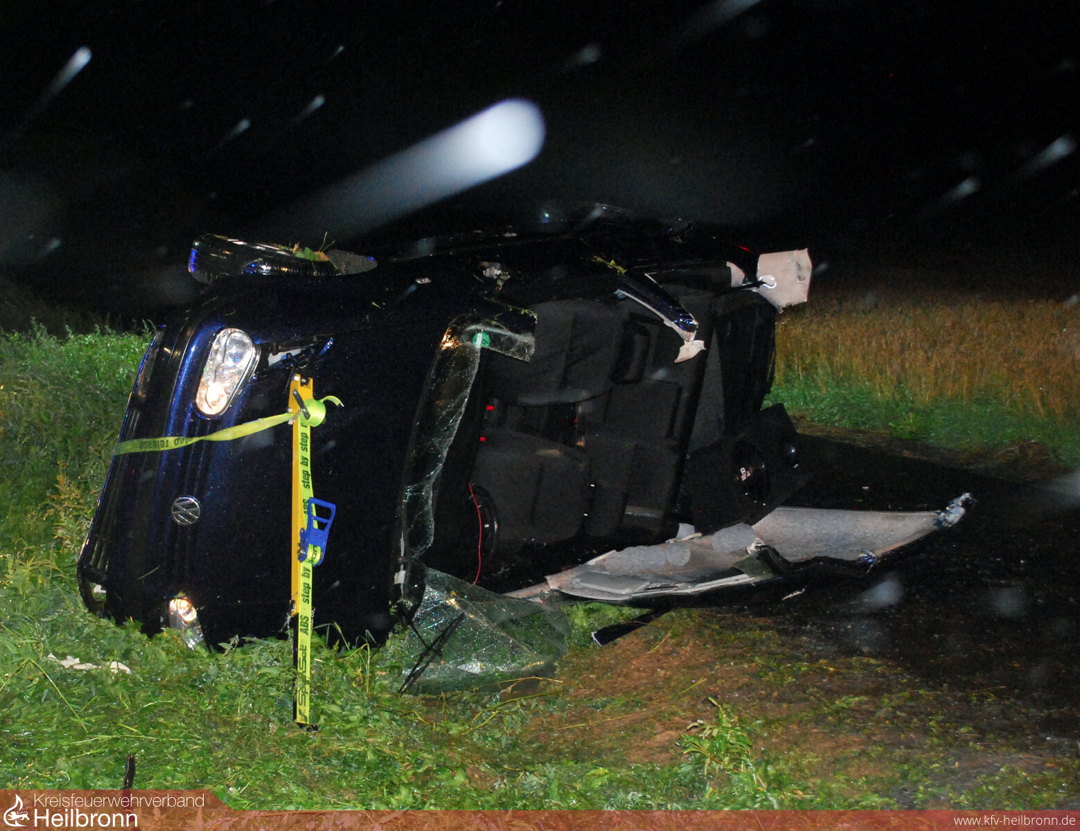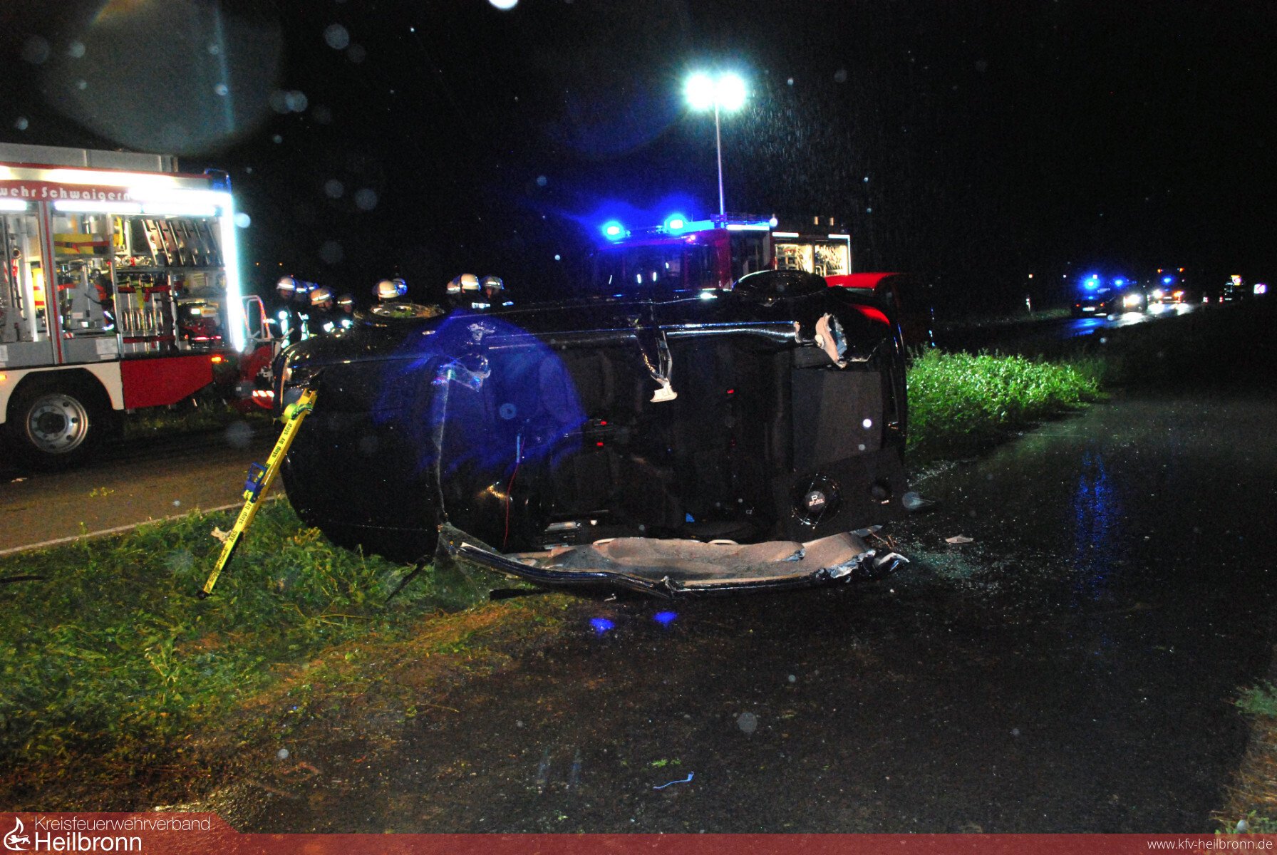 Nach Informationen der Polizei fuhr ein 19-Jähriger von Stetten a. H. in Richtung Schwaigern. Aus bislang unbekannten Gründen kam er von der Fahrbahn ab. Hierbei überschlug sich das Fahrzeug. Der Fahrer erlitt so schwere Verletzungen, dass vom Notarzt leider nur noch der Tod festgestellt werden konnte. Zur Bergung musste das Dach des Fahrzeugs teilweise aufgeschnitten und abgeklappt werden.
