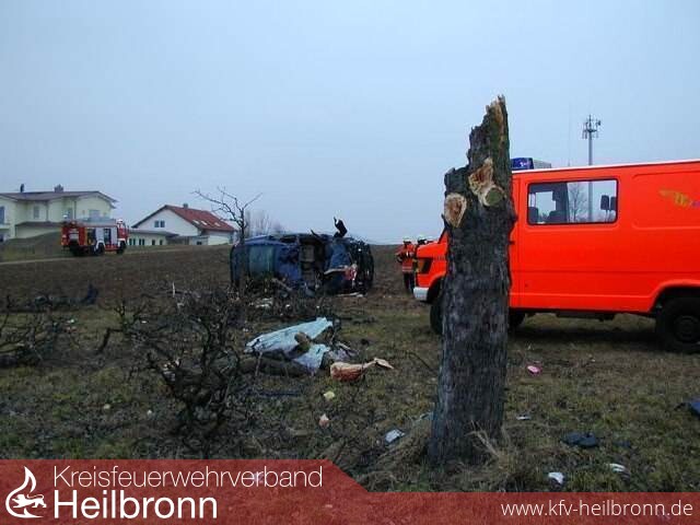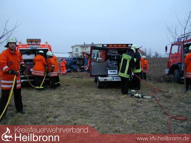 Die Feuerwehren aus Nordheim, Lauffen und Heilbronn befreiten die Eingeklemmten mit mehreren hdraulischen Rettungsgeräten sowie einer Zugeinrichtung. Notarzt und Rettungsdienstpersonal versorgten während der Rettungsaktion die beiden Schwerverletzten. Der Beifahrer verstarb noch an der Unfallstelle.