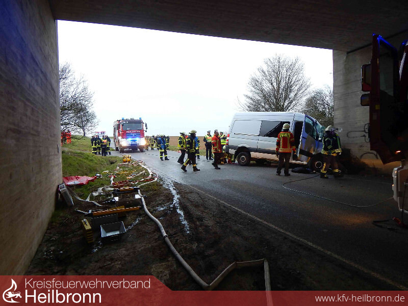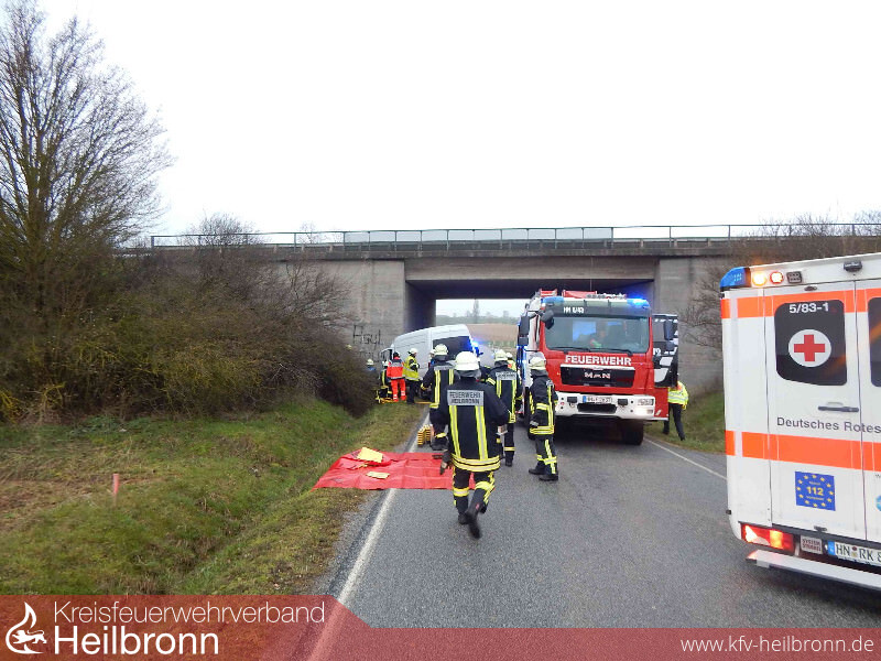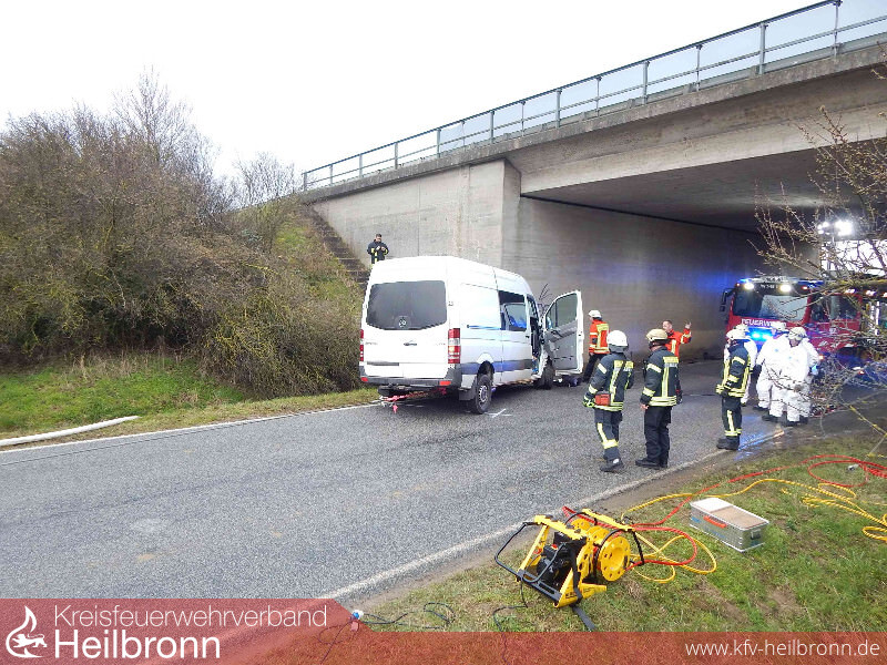 Ein 52-Jähriger fuhr mit seinem Sprinter auf der fast gerade verlaufenden Strecke. Kurz vor der Autobahnunterführung der A 6 verlor er plötzlich die Kontrolle über sein Fahrzeug und prallte frontal gegen die Betonwand der Unterführung.
