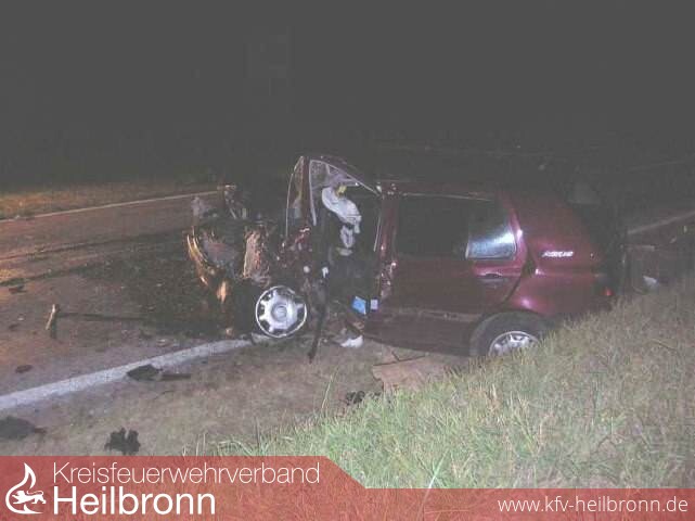 Bei einem Überholmanöver auf der L 592 in Ittlingen kam es am Dienstag kurz nach 18:00 Uhr zu einem Frontalzusammenstoß. Ein 23 Jahre alter Ittlinger war mit seinem Opel aus Richtung Reihen auf dem Heimweg. Er überholte einen Fiat-Kleinwagen und beachtete den Gegenverkehr nicht. Ein 47jähriger Vater war im Golf mit seinen 3 Kindern im Alter von acht, zehn und zwölf Jahren auf dem Heimweg vom Vergnügungspark Tripsdrill nach Biblis. Er hatte keine Chance dem überholenden Opel-Fahrer auszuweichen. Für den verursachenden Opel-Fahrer kam jede Hilfe zu spät, er war auf der Stelle tot. Sein 38jähriger Beifahrer wurde schwerst verletzt. Der Familienvater und seine Kinder erlitten schwere Verletzungen und mussten mit Schere und Spreizer aus dem Golf befreit werden. Vor Ort waren mehrere Notärzte aus Eppingen und Sinsheim sowie 4 Rettungswagen.