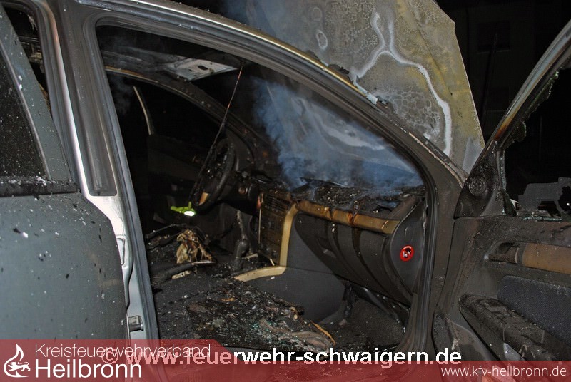 Ein in der Ulmenstrasse in Massenbach geparkter PKW geriet im Motorraum in Brand. Das Feuer griff auch im Bereich des Armaturenbretts in den Innenraum über.