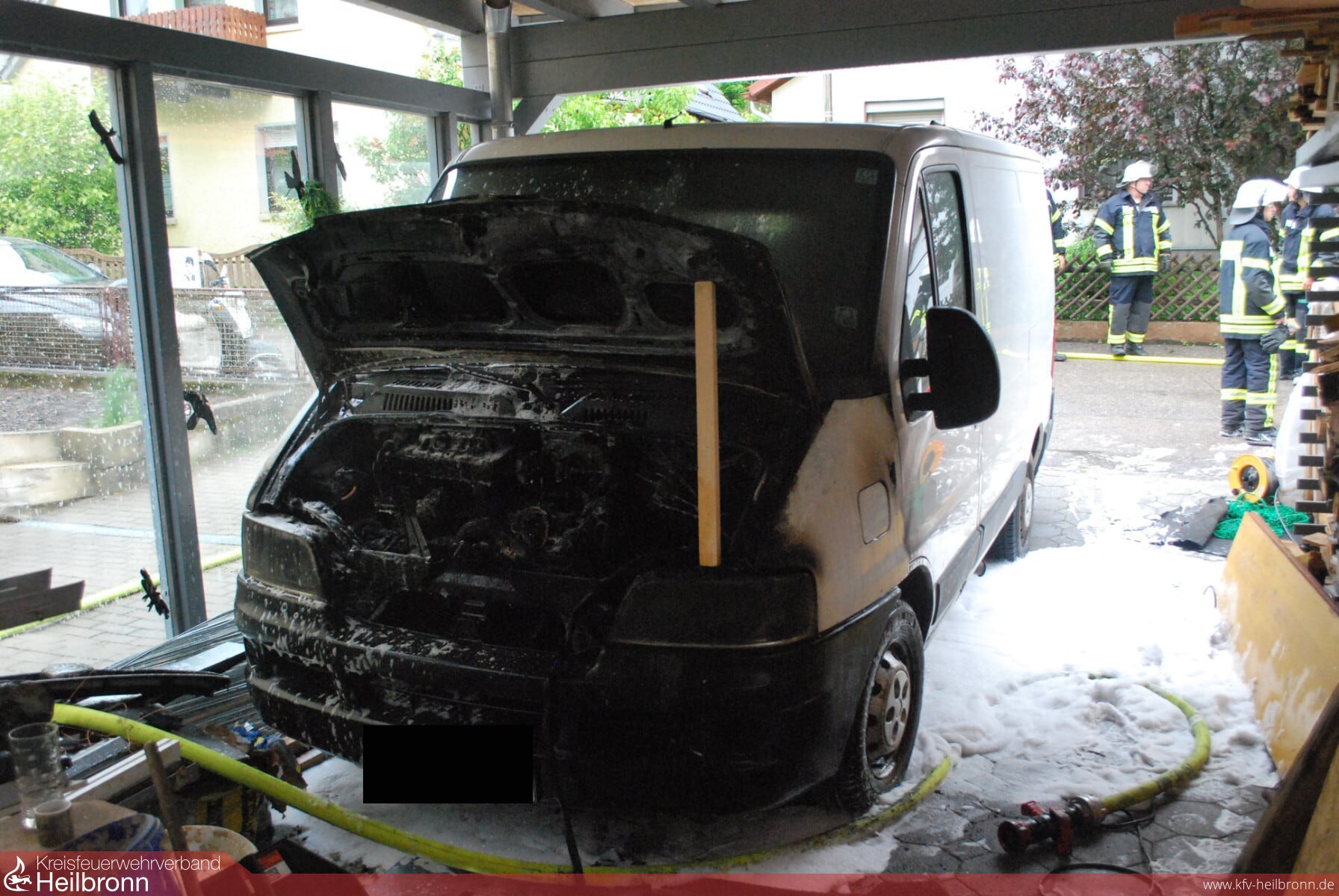 In der Bachstrasse brannte ein unter einem Carport abgestellter Transport.