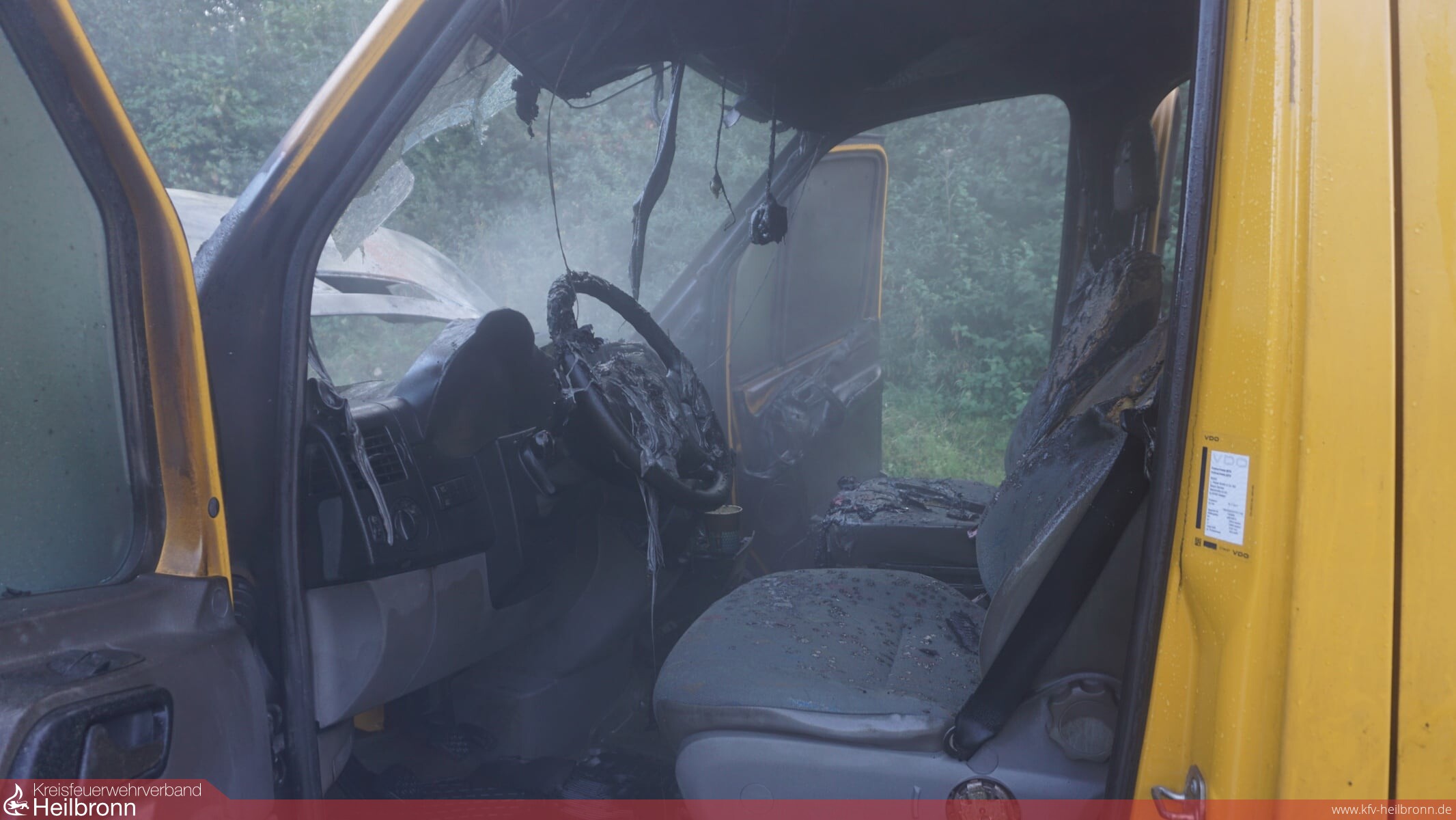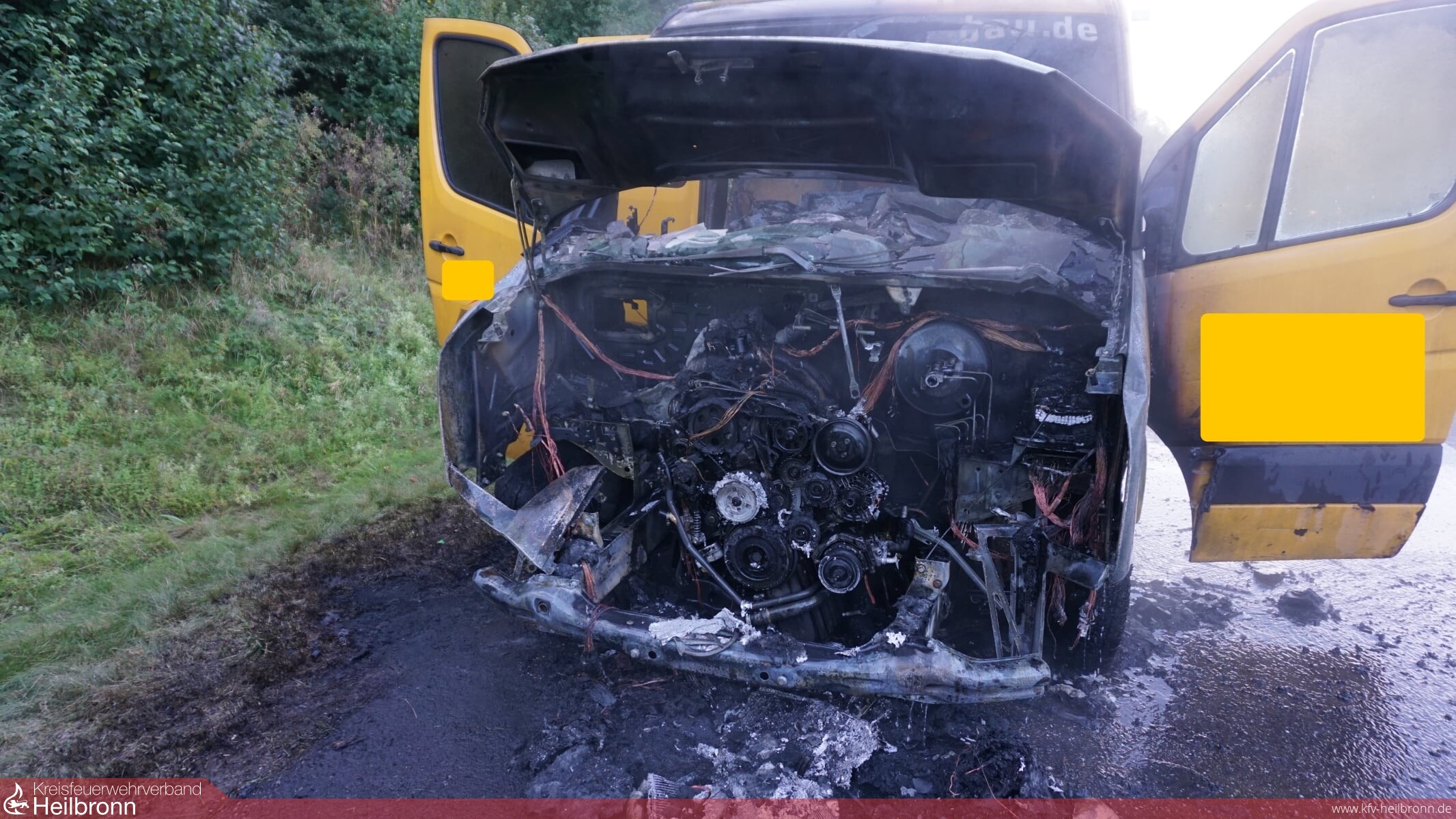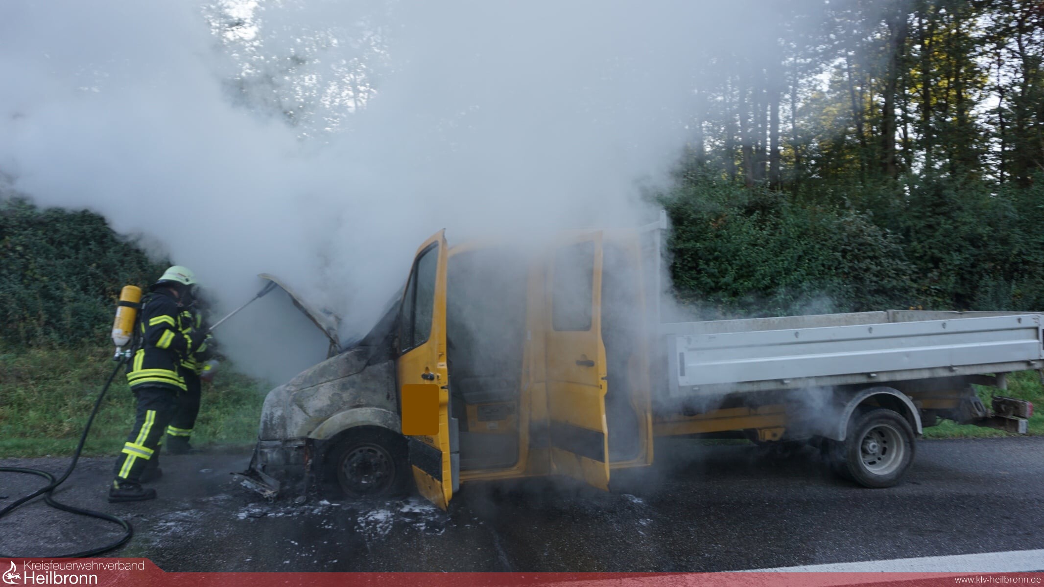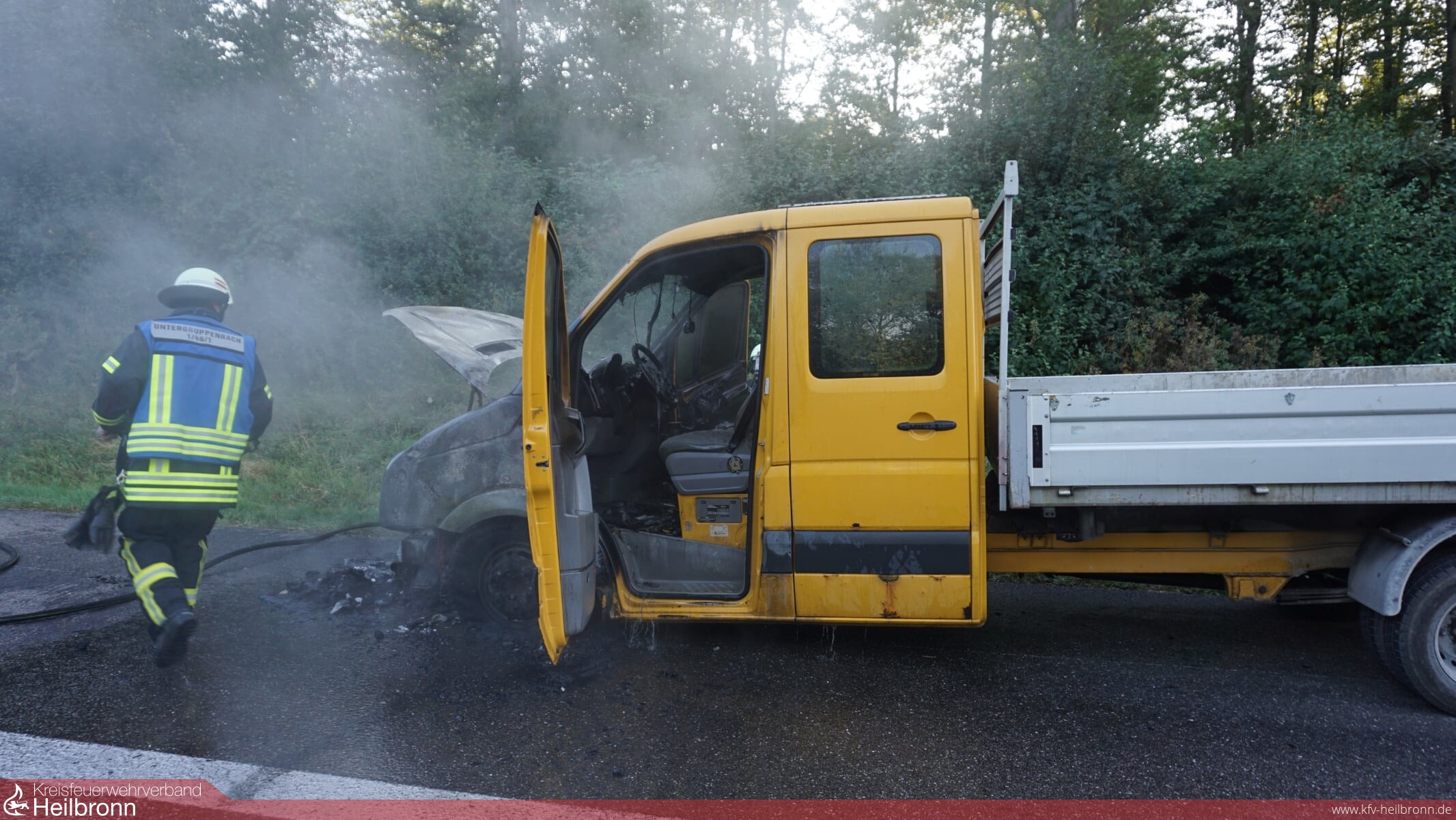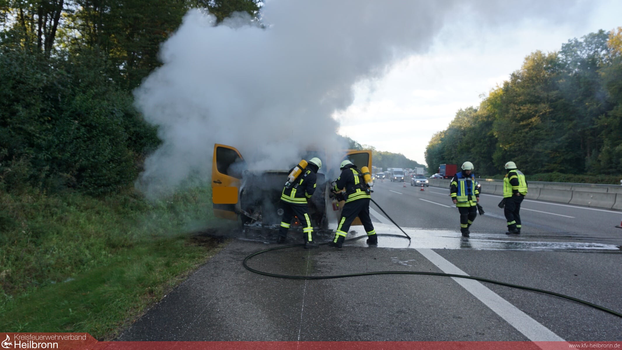 Die Feuerwehr Untergruppenbach wurde auf die BAB 81 in Fahrtrichtung Würzburg alarmiert. Ein VW Crafter mit Pritschenaufbau und Doppelkabine war in Brand geraten.