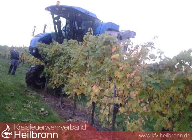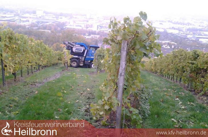 Das Fahrzeug war gerade im Heilbronner Wartberg im Ernteeinsatz, als es im abschüssigen Gelände ins Rutschen kam.