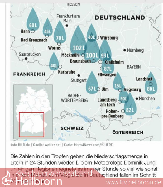 Die Feuerwehr war mit allen Abteilungen, allen Mitgliedern und allen Fahrzeugen im Dauereinsatz. Die meisten Einsatzkräfte arbeiteten rund um die Uhr und ohne Schlaf, in 23 Stunden genau 146 Einsatzstellen ab. Das Einsatzspektrum erstreckte sich von vollgelaufenen Kellern, Erdrutschen, Straßenreinigungen, Absicherungen, Verkehrsunfälle, Hochwasserschutz bis zu Menschenrettungen. In Möckmühl fiel die höchste Niederschlagsmenge in ganz Baden Württemberg, vor diesem Hintergrund muss man doch sagen, dass wir alle glimpflich davon kamen.