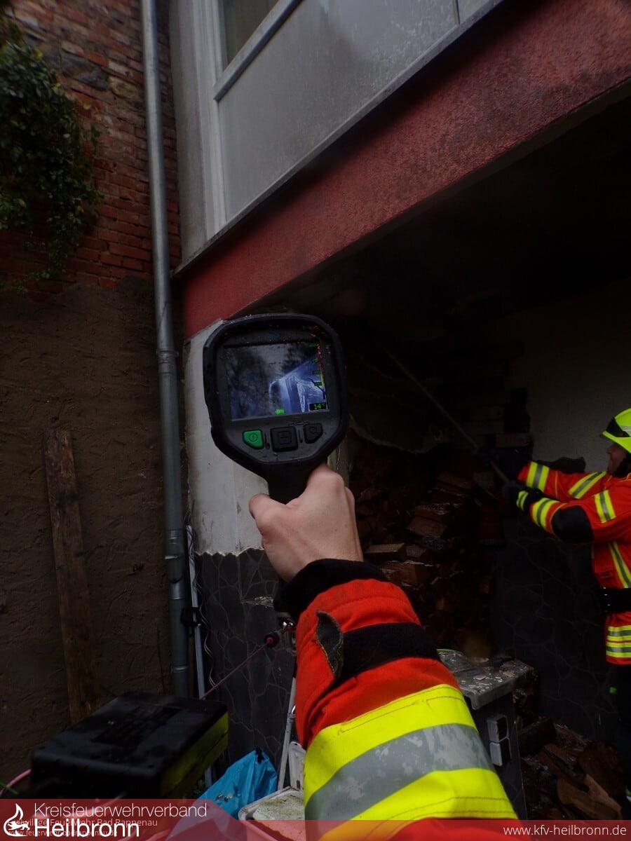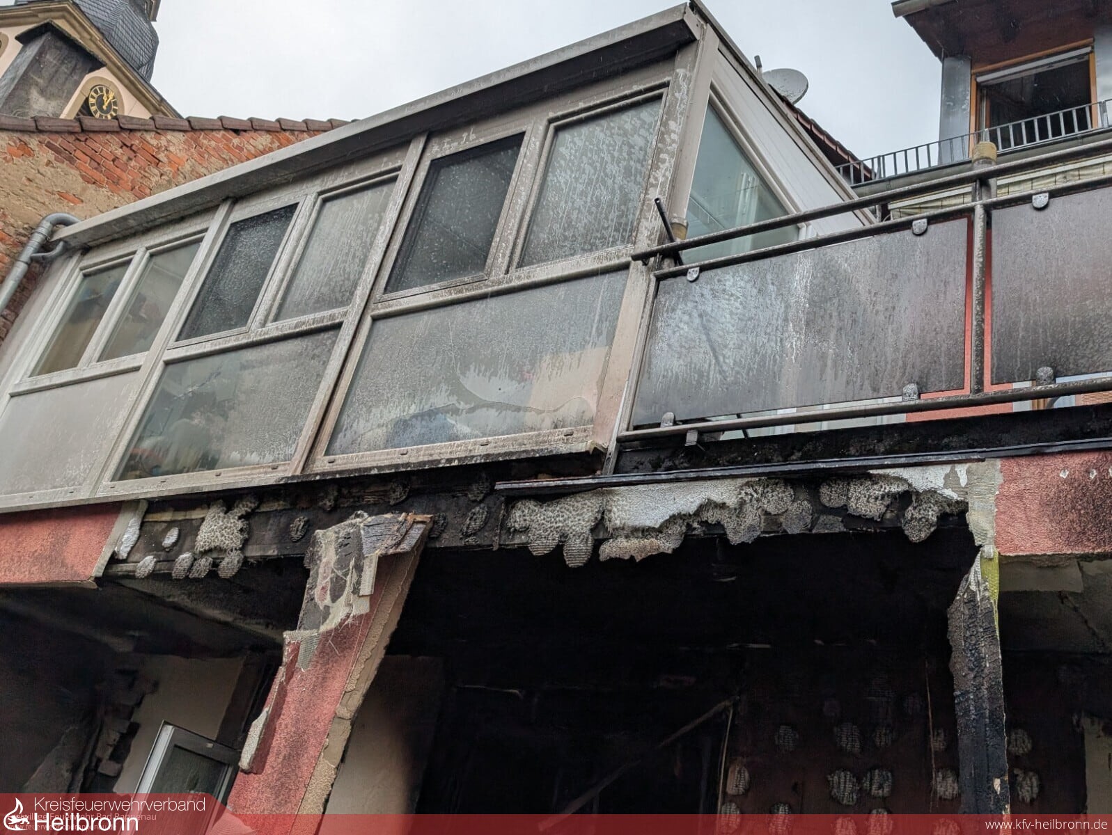 Ein vermutlich nicht vollständig abgelöschtes Glutnest auf dem Balkon, das sich durch herumliegende Gegenstände weiter entzündete, führte zu einem Brand. Die starke Hitzeentwicklung hatte bereits das Fenster zum Innenraum vollständig zerstört und drohte, auf diesen überzugreifen. Mit zwei C-Rohren wurde der Brand gelöscht und anschließend, mithilfe einer Wärmebildkamera, letzte Glutnester in der Außenisolierung entdeckt und abgelöscht. Verletzt wurde niemand.