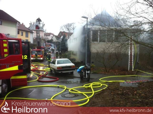 Mit dem Stichwort \"Garagenbrand\" wurde die Feuerwehr Neckarsulm am Freitagmorgen alarmiert. In der Bleichstraße brannte eine Doppelgarage unter einem Einfamilienwohnhaus.