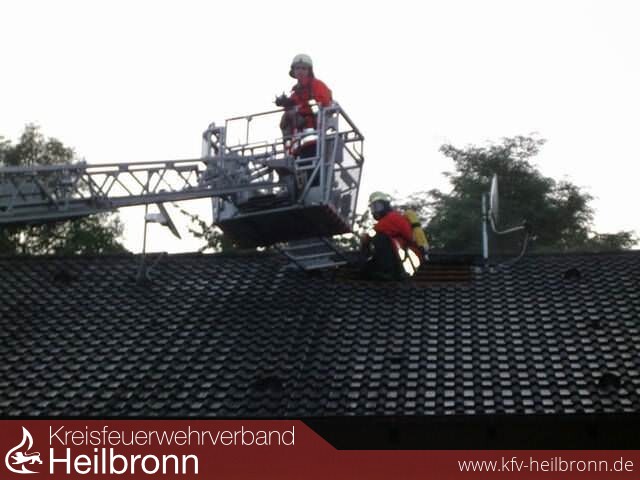 Zur Überlandhilfe bei einem Dachstockbrand wurde die FF Möckmühl mit der Drehleiter nach Neudenau-Herbolzheim gerufen.