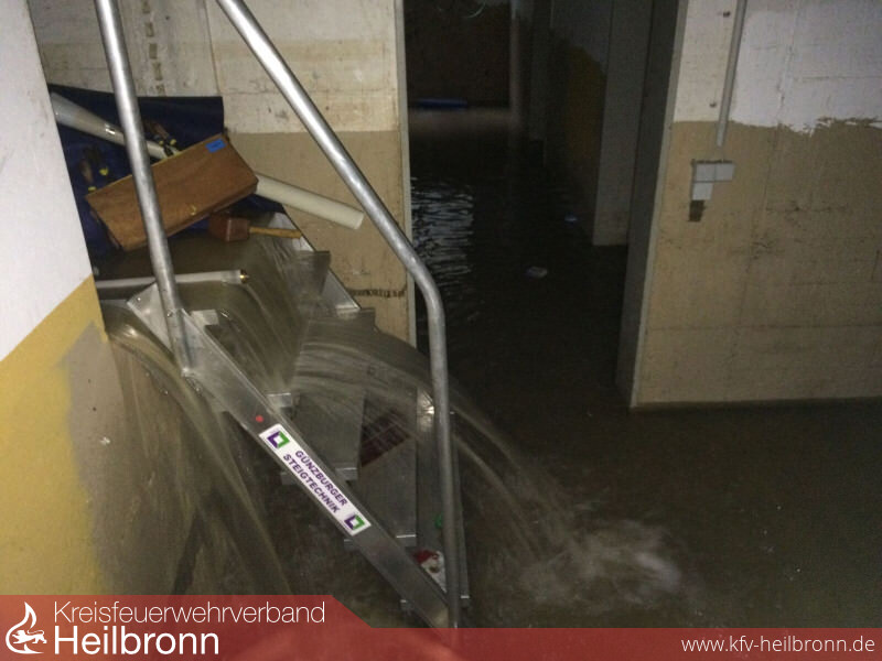 Die massive Unwetterfront die zwischen Sonntag und Montag über unsere Region gezogen war hatte auch in Oedheim immense Schäden verursacht und eine Vielzahl von Einsatzstellen hevorgebracht. Die Abarbeitung allein durch die Feuerwehr Oedheim konnte nicht mehr geleistet werden. Die Wehr aus Untergruppenbach war mit 2 Fahrzeugen und 15 Kräften ca. 12 Stunden in Oedheim aktiv und unterstütze die Kameraden unter anderem bei der Evakuierung des Hirschfeldparks und an den Objekten Hallenbad und Schule, die schwere Schäden davongetragen hatten.