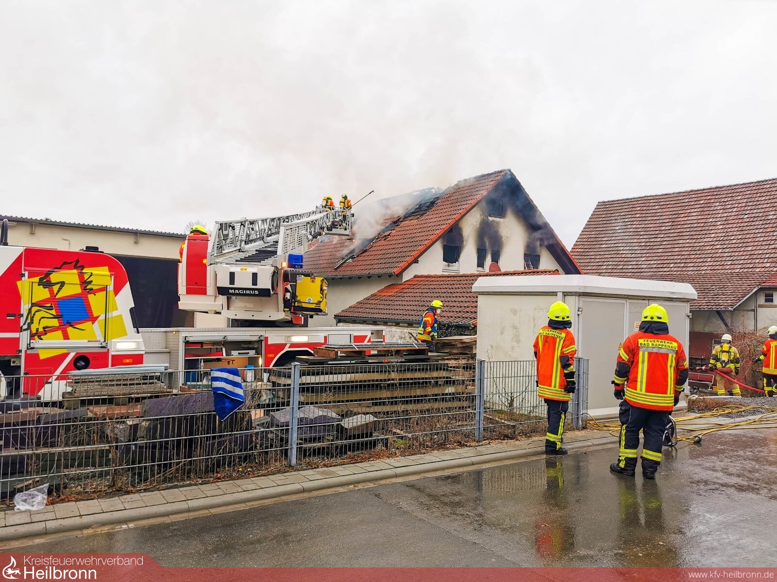 Mit dem Alarmstichwort „Gebäudebrand Menschenleben in Gefahr“ wurde die Freiwillige Feuerwehr Bad Rappenau zur Überlandhilfe nach Kirchardt alarmiert. Gegen 12:20 Uhr meldeten Passanten den Brand bei der Integrierten Leitstelle Heilbronn. Zu diesem Zeitpunkt schlugen bereits die Flammen aus dem Dachstuhl des Hauses. Gemeinsam mit der Feuerwehr Kirchardt wurden zwei Trupps unter Atemschutz in den Innenangriff zur Brandbekämpfung und Menschenrettung entsendet. Gleichzeitig wurde die Drehleiter der Feuerwehr Bad Rappenau in Stellung gebracht um das Dach des Hauses zu öffnen und eine Abluftöffnung zu schaffen um den Rauch aus dem Gebäude zu bekommen. Im Laufe des Einsatzes konnte die vermisste Person tot aufgefunden werden. Nach aktuellem Kenntnisstand befanden sich keine weiteren Personen im Haus. Die Löschmaßnahmen durch die Feuerwehren Kirchardt, Bad Rappenau, Ittlingen und Heilbronn dauerten mehrere Stunden an. Der entstandene Sachschaden kann derzeit nicht beziffert werden. Die Kriminalpolizei Heilbronn hat die Ermittlungen aufgenommen. Die Feuerwehr Bad Rappenau war insgesamt mit 6 Fahrzeugen und 30 Einsatzkräften im Einsatz. Des Weiteren waren die Feuerwehren Kirchardt, Heilbronn und Ittlingen insgesamt mit 6 Fahrzeugen und 39 Einsatzkräften vor Ort.