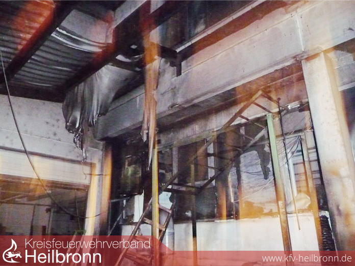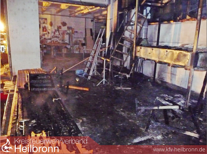 Die FF Jagsthausen hatte das Feuer schnell unter Kontrolle, der Innenbereich wurde mit drei weiteren Trupps unter Atemschutz und einer Wärmebildkamera kontrolliert.