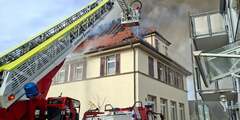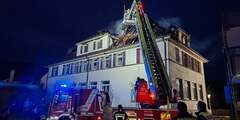 Beide Drehleitern, die gleichzeitig an der Einsatzstelle eingetroffen sind, waren bis kurz nach 1:00 Uhr im Einsatz und löschten Glutnester sowie immer wieder aufflammende Bereiche ab.