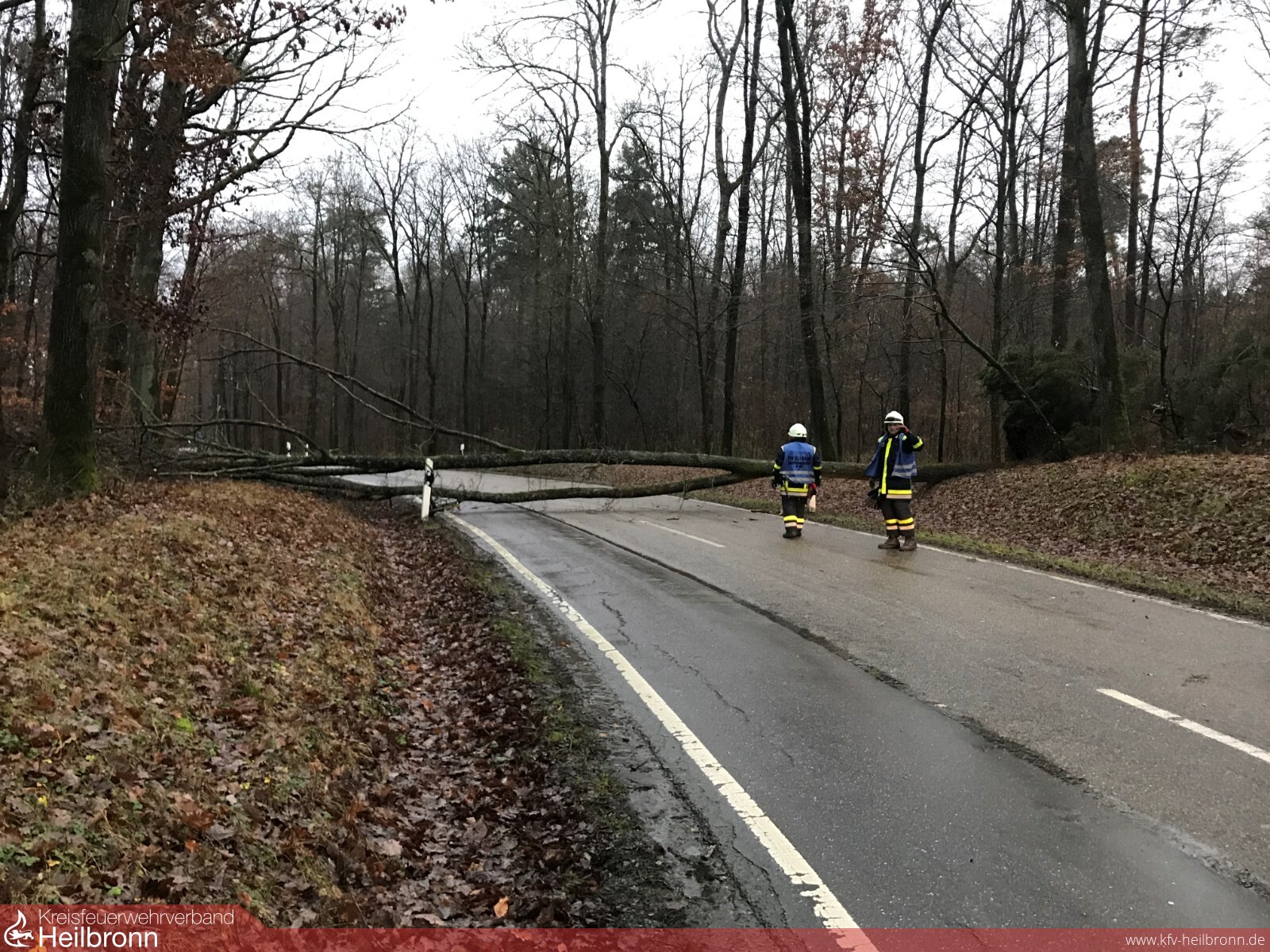 Aufgrund der Stumereignisse dieses Morgens wurde auch die Feuerwehr Cleebronn alarmiert. Auf der Kreisstrasse zwischen Cleebronn und Freudental war ein Baum umgestürzt und blockierte die Fahrbahn komplett. Die Feuerwehr war mit 2 Fahrzeugen im Einsatz, der baum wurde beseitigt, die Fahrbahn gereinigt und die restliche Waldstrecke bis Freudental auf weitere Schäden hin überprüft.