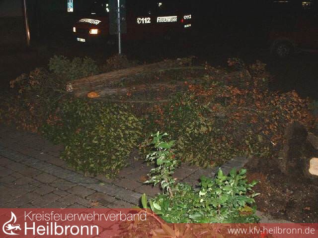 Bedingt durch starke Windböen sind in der Hauptstraße oberhalb der Kirche mehrere Bäume ungestürzt. Einer davon hat ein geparktes Auto beschädigt.