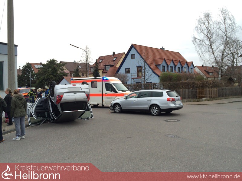 Dort eingetroffen konnte ein auf dem Dach liegender und ein im Kreuzungsbereich stehender PKW, bei welchem die Airbags ausgelöst hatten, angetroffen werden. Die als eingeklemmt gemeldete Person war bereits durch Passanten aus dem Fahrzeug gerettet worden, so dass sich die Maßnahmen der Feuerwehr auf die Betreuung der Person und die Absicherung der Unfallstelle beschränken konnten.