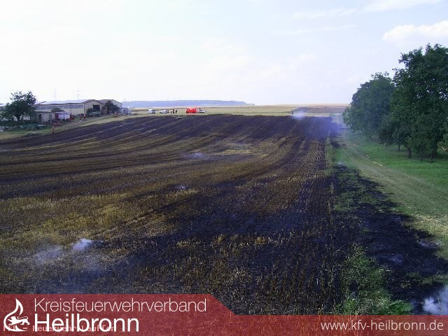 Kaum war der Mähdrescher fort, nutzten Konstrukteure eines Fun-Cars, mit Erlaubnis des Besitzers, das frische Stoppelfeld zum Test ihres Fahrzeuges. Beim Befahren eines abgesteckten Bereiches, setzte das Fahrzeug infolge eines technischen Defekt auf dem Boden auf. Durch den heißen Motor entzündete sich dann das Stoppelfeld. Da die Versuche das Feuer selbst zu löschen scheiterten und sich das Feuer auch durch den Wind immer weiter ausbreitete, wurde die Feuerwehr alarmiert, bevor das Feuer auf eine angrenzende Lagerhalle übergreifen konnte.
