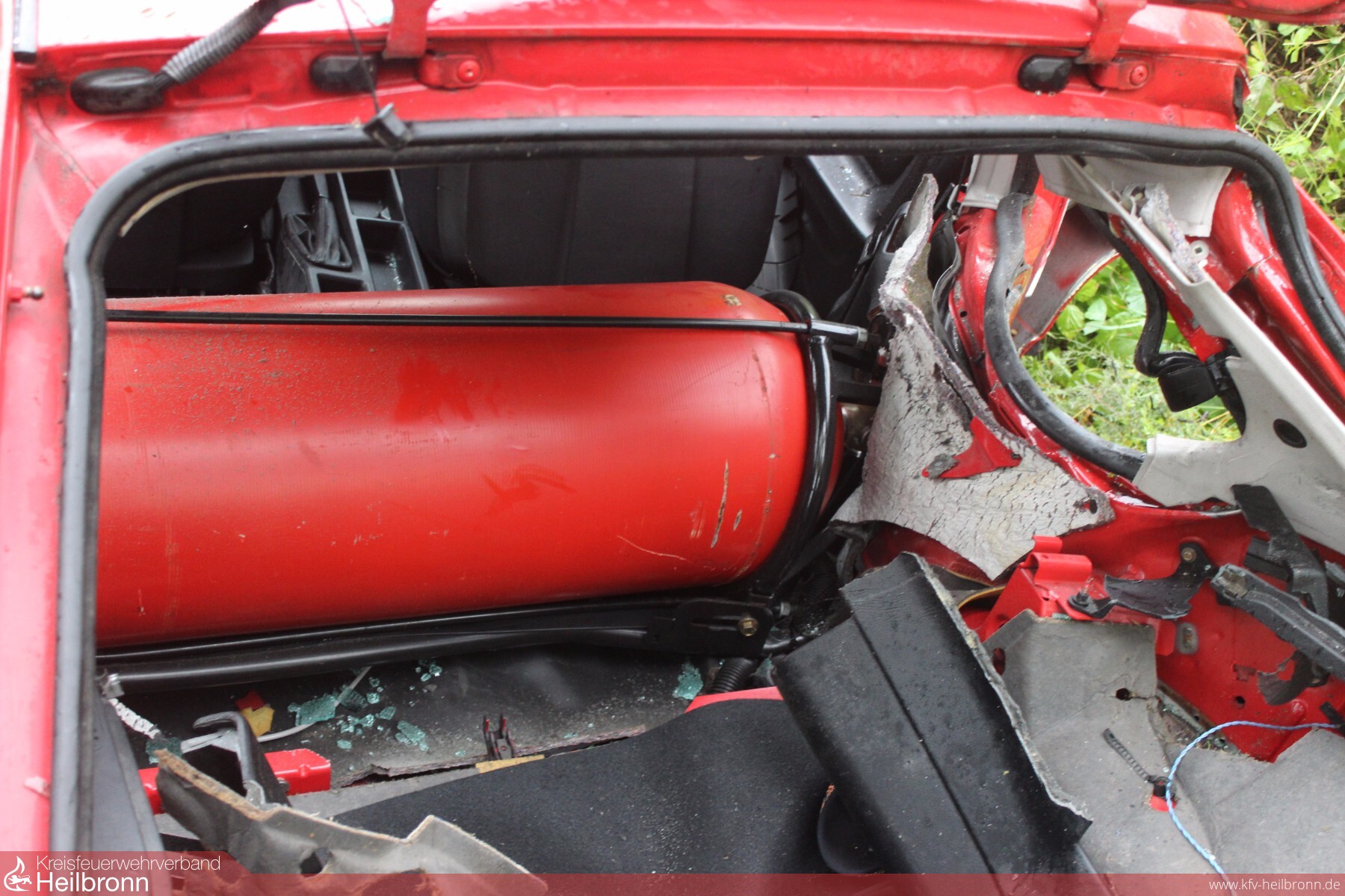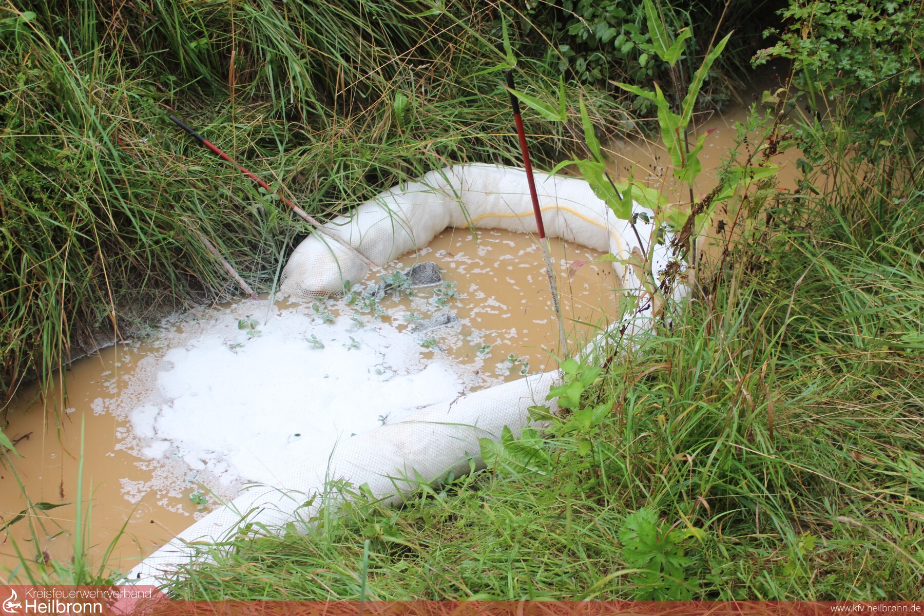 Von der GW-Besatzung wurde das Öl auf dem See und im Zulauf gebunden bzw. zurückgehalten. Weil das Fahrzeug genau mit dem Gas-Einfüllstutzen den Baum traf und dieser Bereich dadurch stark deformiert war, wurde der Gasabsperrhahn von innen freigelegt und abgesperrt.