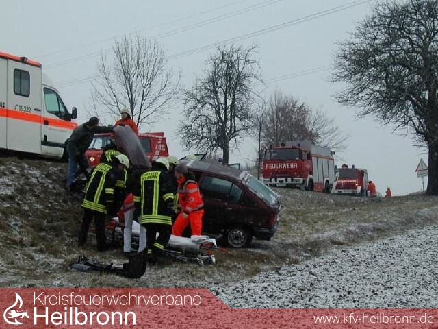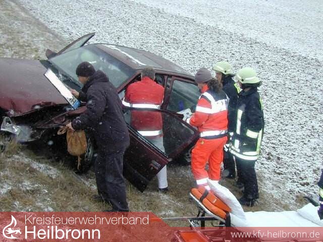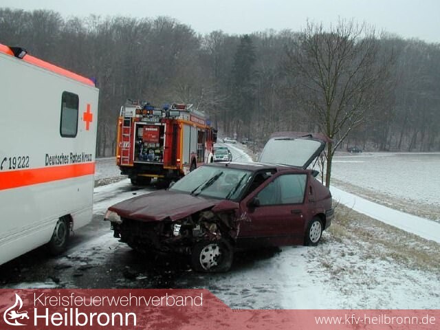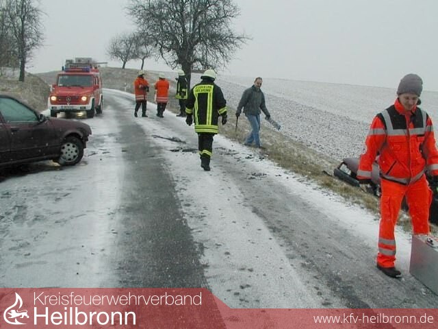 Ein Unfall auf schneeglatter Fahrbahn ereignete sich auf der L 1105 zwischen Leingarten und Heilbronn-Kirchhausen.