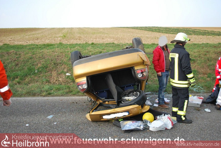 Auf der B293 kam es in Höhe Schwaigern zu einem Verkehrsunfall, bei dem zwei Insassen leicht und ein Insasse schwer verletzt wurde.