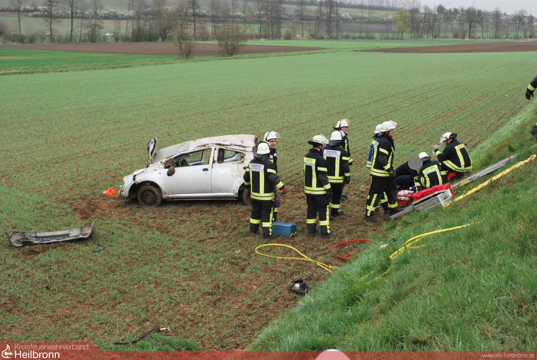 Nach ersten Ermittlungen der Polizei befuhr ein 19-jähriger Lenker eines Pkw Citroen die Kreisstraße 2160 von Stetten kommend in Richtung Schwaigern. Im Bereich der Lachenhöfe verlor er in einer Rechtskurve die Kontrolle über seinen Pkw,kam nach links von der Fahrbahn ab und stürtze über eine Böschung. Auf dem Acker überschlug sich der Pkw dann und kam schließlich wieder auf den Rädern zum stehen.