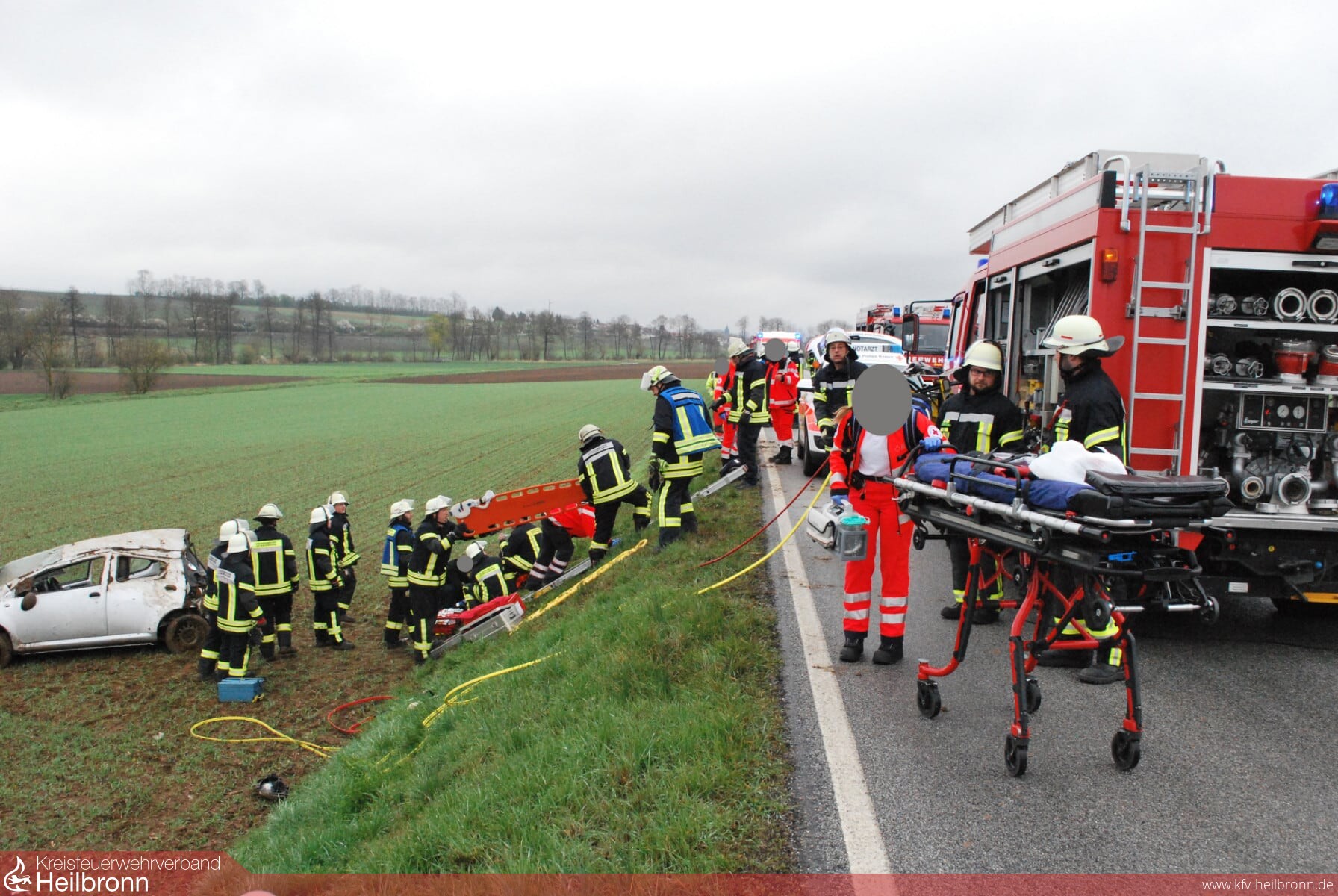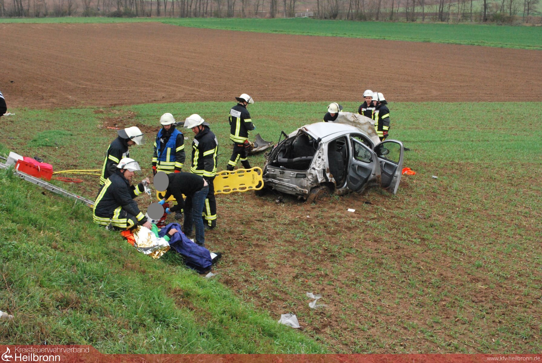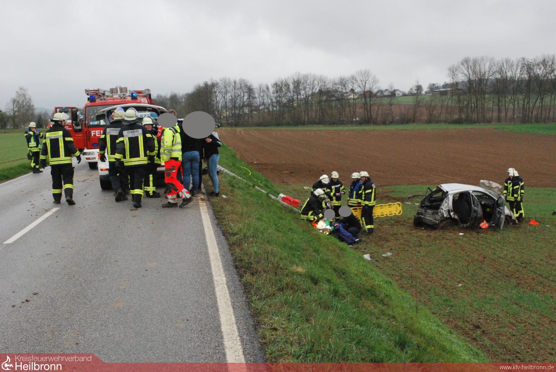 Bei diesem Unfall erlitt zwei der Insassen schwere Verletzungen, zwei weitere wurden leicht verletzt. Drei Personen waren beim Eintreffen der Rettungskräfte bereits von Ersthelfern aus dem Unfallfahrzeug gerettet und betreut worden. Zusammen mit dem Rettungsdienst wurde die noch im Fahrzeug befindliche Person patientengerecht aus dem Fahrzeugwrack geholt. Alle Verletzten wurden vom Rettungsdienst übernommen und ins Krankenhaus gebrcht.