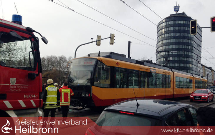 Am Freitagmittag gegen 12 Uhr ist in Heilbronn bei der Friedrich-Ebert-Brücke ein Auto mit einer Stadtbahn zusammengestoßen. Der Fahrer des Autos wurde dabei nach Polizeiangaben leicht verletzt. Erste Informationen, wonach sich der Fahrer des Smart schwere Verletzungen zugezogen habe, bestätigten sich nicht. Ein Passagier der Stadtbahn zog sich durch den Aufprall ebenfalls leichte Verletzungen zu.