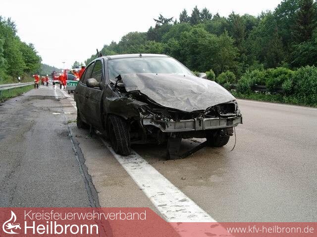 Ein Fahrzeug sei in die Leitplanken gefahren. Der Unfallort war kurz nach der Raststätte Jagsttal in Fahrtrichtung Stuttgart gemeldet. Tatsächlich befand sich aber die Einsatzstelle einen Kilometer vor der Raststätte. Die Möckmühler Einsatzkräfte mussten somit zuerst bis zu der Anschlussstelle Osterburken durchfahren und dann auf die Gegenfahrbahn wechseln.
