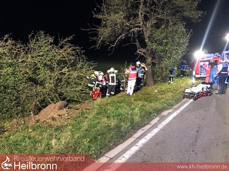 Mit schweren Verletzungen musste der Rettungsdienst am Mittwochabend einen 33-Jährigen nach einem Unfall bei Eppingen ins Krankenhaus bringen. Der Mann fuhr gegen 23 Uhr mit seinem Mercedes von Richen in Richtung Ittlingen und überholte laut Zeugen innerhalb einer Überholverbots- und 70 km/h-Strecke einen anderen PKW mit deutlich überhöhter Geschwindigkeit. In der anschließenden Rechtskurve kam der Daimler nach links von der Straße ab, prallte nacheinander gegen zwei Apfelbäume, überschlug sich und blieb auf dem Dach liegen. Zunächst wurde davon ausgegangen, dass der Fahrer eingeklemmt sei, doch er konnte von Ersthelfern noch vor dem Eintreffen der alarmierten Eppinger Feuerwehr aus dem Wrack seines Wagens geborgen werden. Aufgrund der Schwere seiner Verletzungen wurde er in die Intensivstation eingeliefert. Die vermutliche Unfallursache neben der überhöhten Geschwindigkeit war anhand einer „Fahne“ deutlich riechbar für die aufnehmenden Polizeibeamten, weshalb bei dem 33-Jährigen eine Blutentnahme veranlasst wurde. Sein Führerschein wurde beschlagnahmt.