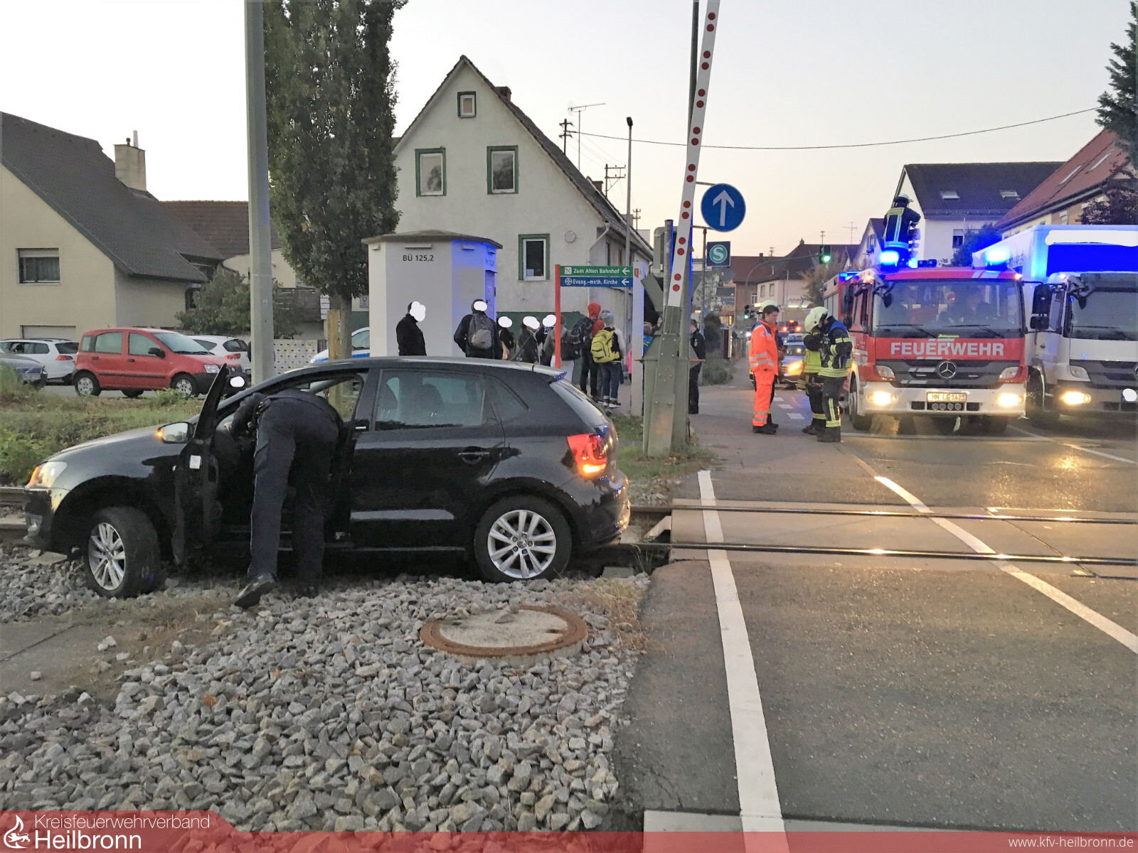 Aus unbekannter Ursache touchierte ein Fahrer am Donnerstagmorgen aus der Brühlstraße kommend ein auf der Eppinger Straße fahrendes Fahrzeug. Dieses wurde in eine Drehung versetzt und kam neben dem Bahnübergang im Gleisbett zum Stehen. Auf Grund der unklaren Meldungen in die Leitstelle, alarmierte diese die Feuerwehr Leingarten mit dem Stichwort „Verkehrsunfall PKW, eine Person eingeklemmt“. Der ersteintreffende Einsatzleiter der Feuerwehr veranlasste umgehend die Sperrung des Bahnverkehrs. Schnell stellte sich auch heraus, dass die Fahrerin des touchierten Fahrzeuges nicht eingeklemmt war. Die Besatzung des Hilfeleistungsfahrzeuges versorgte die Frau bis zum Eintreffen des Rettungsdienstes. Nach der Unfallaufnahme durch die Polizei, unterstützte die Feuerwehr noch bei der Bergung des Fahrzeuges, sodass der Schienenverkehr zeitnah freigegeben werden konnte. Nach gut einer Stunde konnte der Einsatz beendet werden.