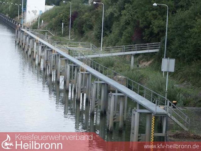 Auf einem Schiff im Unterwasser der Schleuße Kochendorf hatte sich ein Matrose bei Wartungsarbeiten Schnittverletzungen am linken Arm zugezogen, befand sich in einem leichten Schockzustand. Das Schiff hatte am Steg der Verladestation des Salzwerkes angelegt, das Verlassen des Schiffes über die Stegleiter war wegen der Kreislaufschwäche nicht möglich.