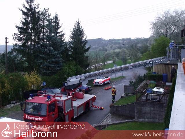 Der Rettungsdienst forderte die Feuerwehr in die Steiner Straße nach Neudenau zur Unterstützung an. Eine Person musste aus dem ersten Obergeschoss eines Wohnhauses gerettet werden. Mit der Drehleiter wurde die Person auf der Schleifkorbtrage über den Balkon sicher zu Boden gebracht und anschließend dem Rettungsdienst übergeben.