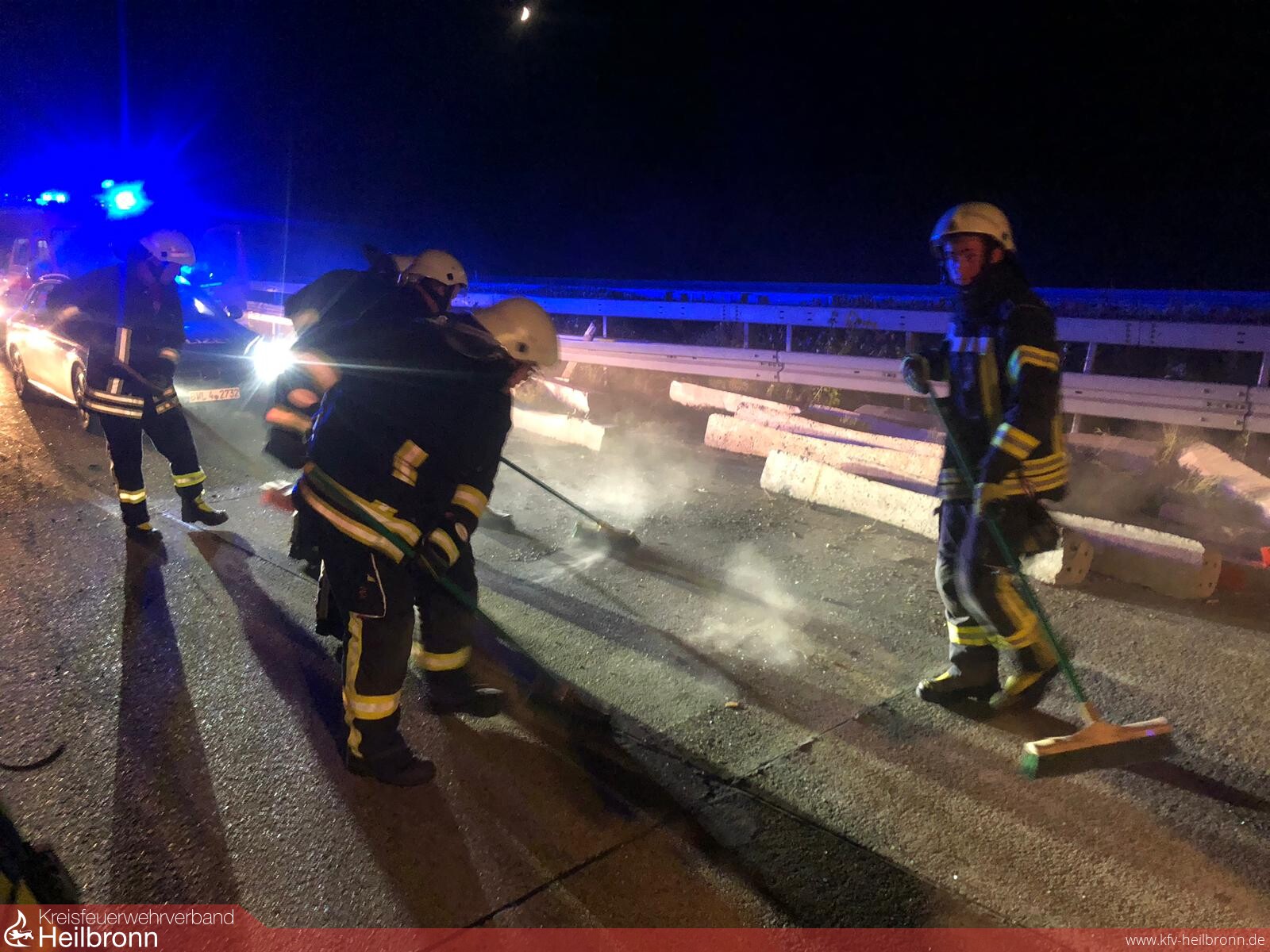 Zur Unterstützung des Rettungsdienstes nach einem Unfall mit mehreren LKW wurde die Feuerwehr Widdern auf die BaB 81 Richtung Würzburg Alarmiert (Siehe Bericht). Die Unfallstelle wurde ausgeleuchtet und Auslaufende Betriebsmittel gebunden.