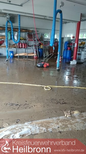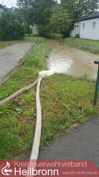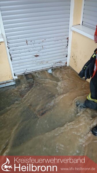 Für die Feuerwehr Weinsberg wurde um 01:09 Uhr unter dem Einsatzstichwort „Unwetterlage“ Alarm ausgelöst. Um auf mehrere, unter Umständen auch gleichzeitig auflaufenden Einsatzmeldungen vorbereitet zu sein und schnell reagieren zu können, wurde auch die Führungsgruppe mit alarmiert. Diese Maßnahme der Einsatzführung hatte sich bewährt, da einige Zeit später Vollalarm ausgelöst werden musste. Durch den Anstieg des Grundwasserspiegels und durch teilweise überlaste Abwasserleitungen musste die Feuerwehr Weinsberg an fünf Einsatzstellen tätig werden. Diese, im Vergleich mit anderen Gemeinden sehr niedrige Schadens-meldungen, zeigt erneut, wie effektiv der Hochwasserschutz des Gemeindeverbandes funktioniert. Parallel dazu galt es auch in Gellmersbach fünf Einsatzstellen abzuarbeiten.