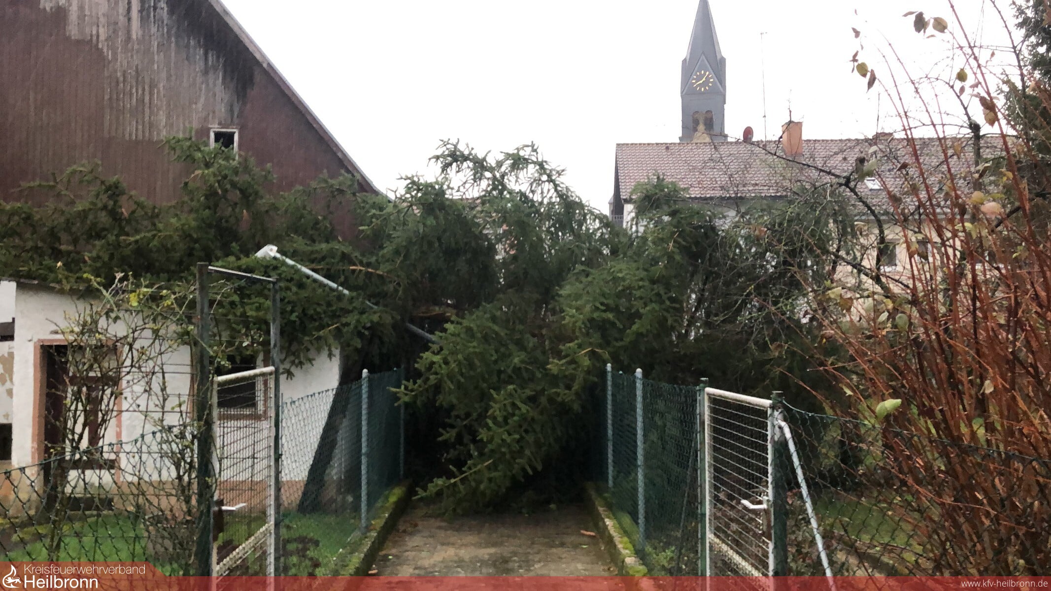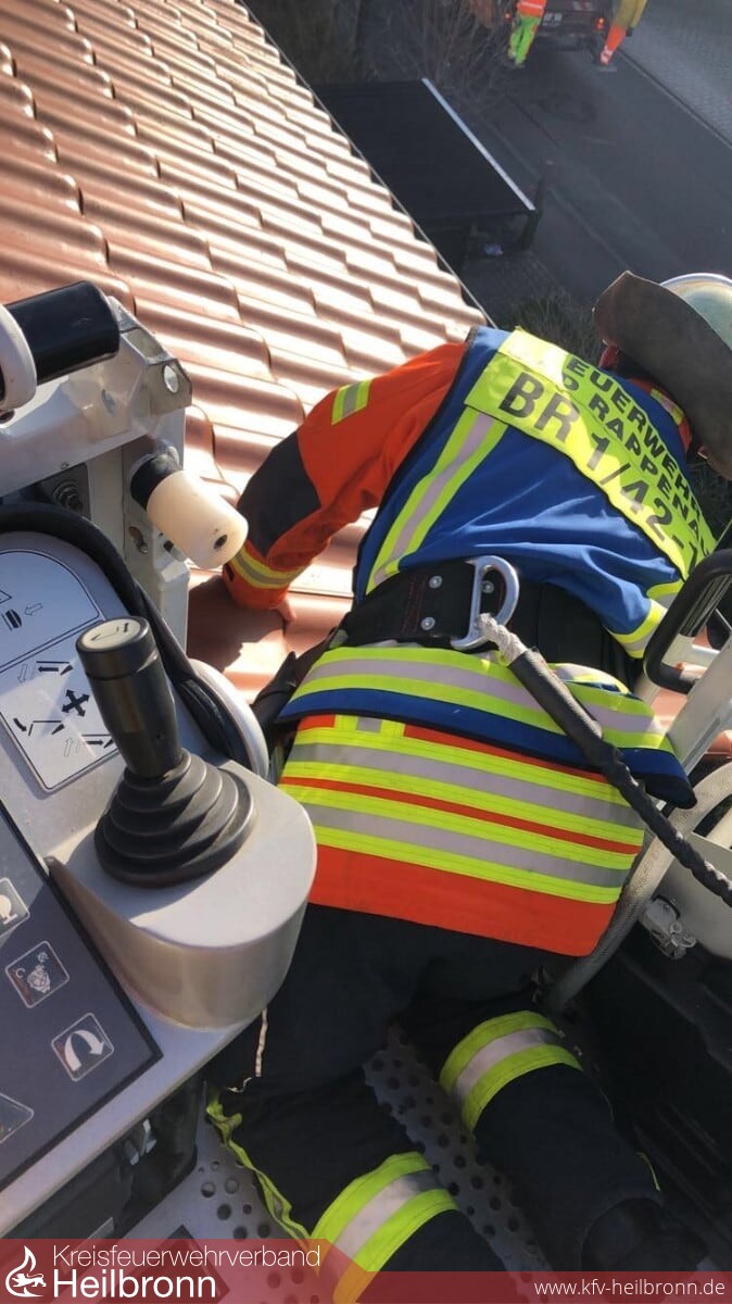 Die zweite Alarmierung mit selbigem Stichwort erfolgte um 7:40 Uhr für die Abteilungen Bad Rappenau und Babstadt. Auf der K2043 war wiederum ein Baum umgestürzt, welcher durch die Abteilung Babstadt beseitigt wurde. Da auch diesmal keine größere Anzahl an Einsätzen zu erwarten war, wurde die Bereitschaft direkt nach Einsatzende aufgelöst. In Bad Rappenau wurde lediglich eine Ersteinsatzgruppe (1/5) mit LF8/6 inkl. 2 Fernmeldern vorgehalten. Deren Aufgabe bestand darin die gemeldeten Einsatzstellen zu sichten, Zuständigkeiten der Feuerwehr zu abzuklären, Sofortmaßnahmen umzusetzen und weitergehende Maßnahmen zu veranlassen. Somit konnten die restlichen Kameraden ihrer regulären Arbeit nachgehen und wären nur im Falle eines größeren Ereignisses erneut alarmiert worden. Bis 14:00 Uhr wurden so nochmals 7 Einsatzstellen bearbeitet. In Obergimpern brach eine Tanne über einen Fußweg und knickte die darunter befindliche Laterne ab. Durch die Feuerwehr wurde der Bereich weiträumig abgesperrt und der Energieversorger verständigt. In Bad Rappenau hatten sich an Gebäuden am Busparkplatz der Verbundschule und an der Babstadter Straße Ziegel gelöst. Im Bereich des Busparkplatzes konnten diese durch die Feuerwehr gesichert werden, an der Babstadter Straße war hingegen ein Einsatz nicht möglich, so dass der Gefahrenbereich durch den Bauhof abgesperrt wurde. Weiterhin wurde durch die Einsatzkräfte ein vom Sturm geöffneter und beschädigter Schaltkasten eines Regenüberlaufbeckens gesichert und die Kläranlage als Betreiber darüber verständigt. Auf der B39 zwischen Fürfeld und Kirchhausen stellte sich ein gemeldeter Baum auf der Fahrbahn als große Äste heraus, welche durch die Feuerwehr in den Grünstreifen verfrachtet wurden, so dass die Straße wieder passierbar war. Im Stadtgebiet wurde mittels Drehleiter noch Unterstützung für den Bauhof gegeben, wenn im Baum verhakte aber bereits abgebrochene Äste entfernt werden mussten.