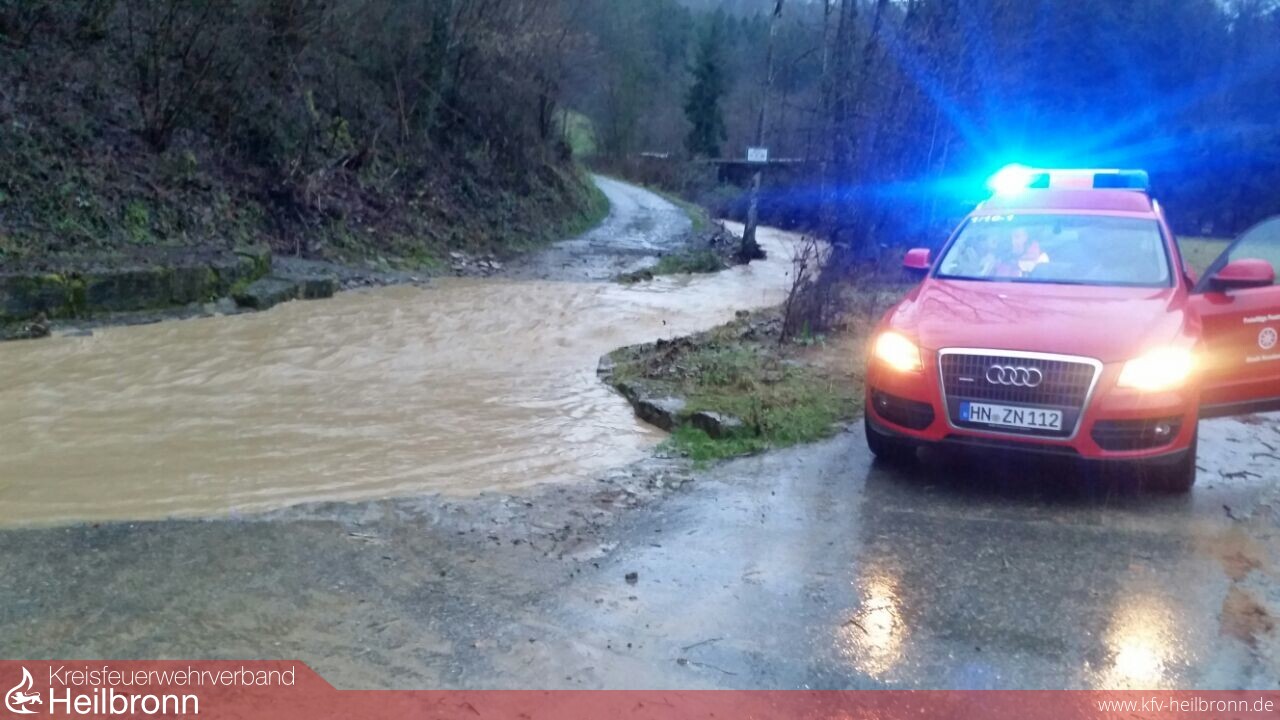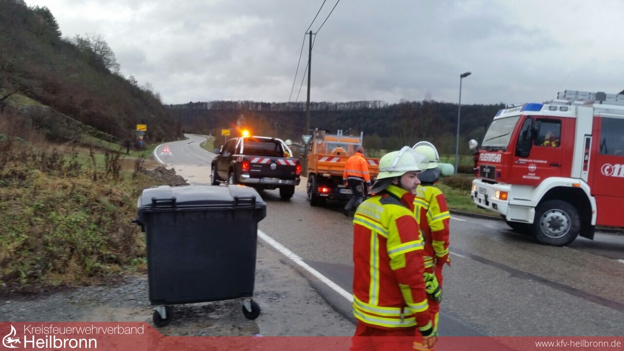 Aufgrund des vorangegangenen Starkregens kam es zu mehreren Behinderungen im Stadgebiet. So wurde die Landesstraße 1096 Richtung Siglingen gleich an mehreren Stellen überflutet.