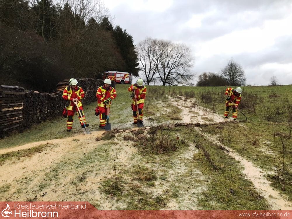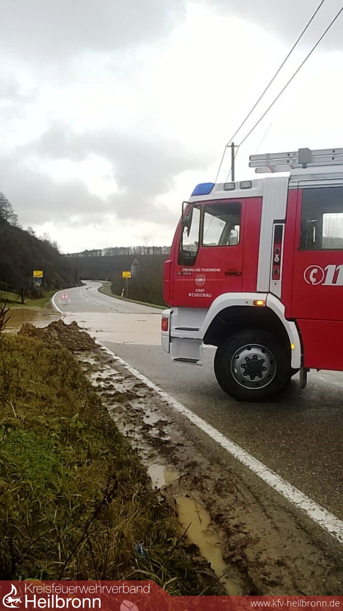 Die Einsatzabteilungen Neudenau und Herbolzheim sicherten die Einsatzstellen bis zum Eintreffen vom Bauhof, der die weitere Sicherung/Sperrung mit Verkehrsschildern durchführte. Außerdem wurden wieder die einschlägigen Punkte für Überflutungsgefahr abgefahren und kontrolliert.