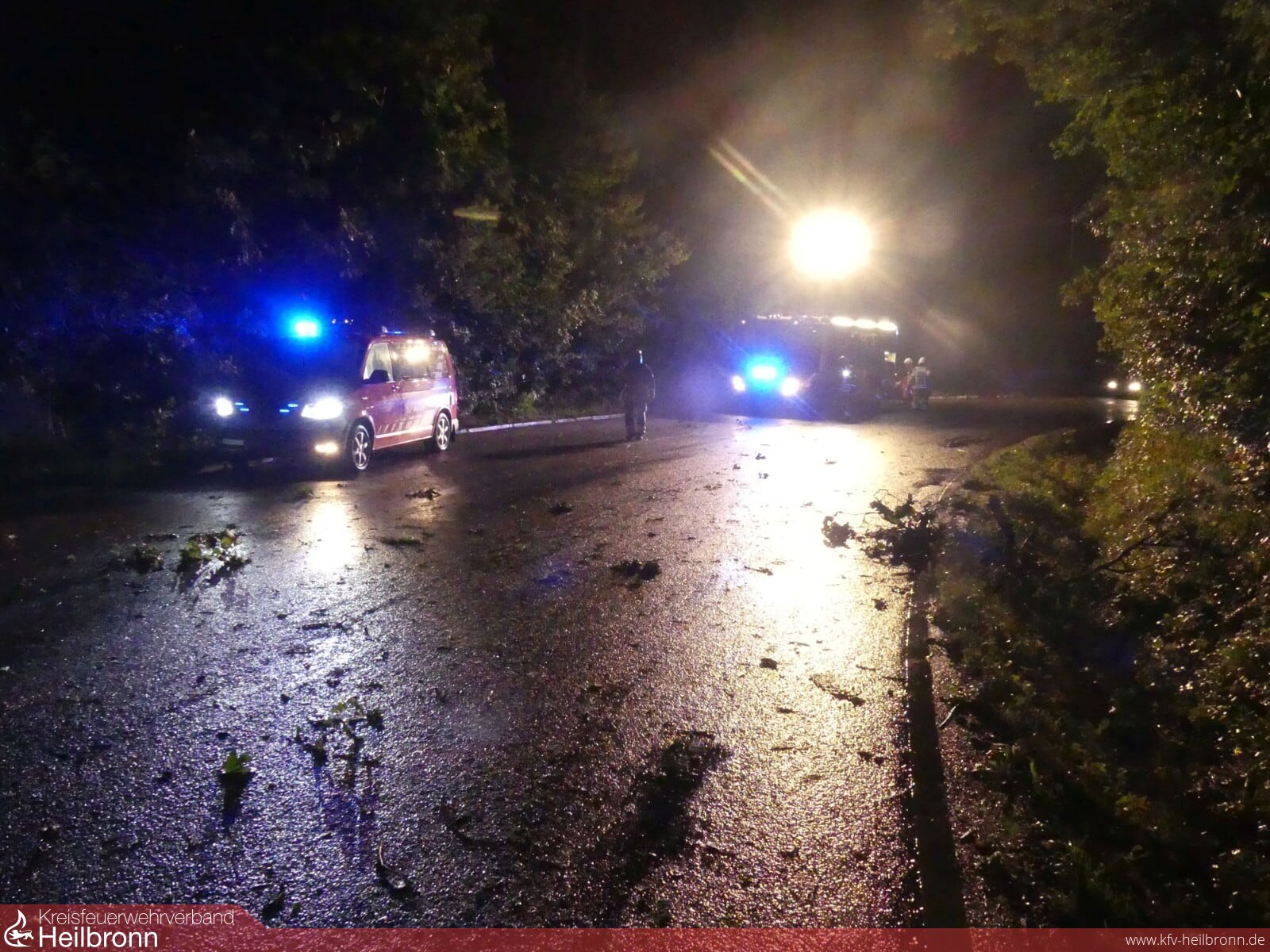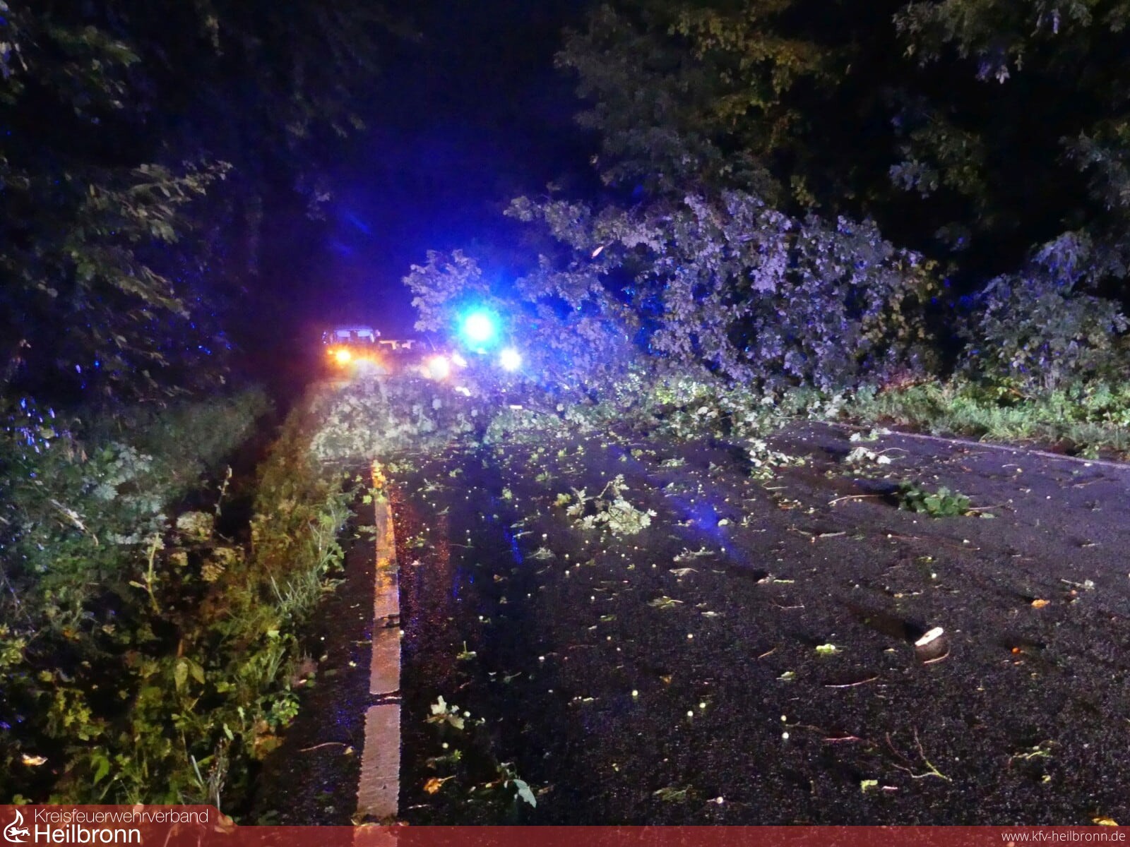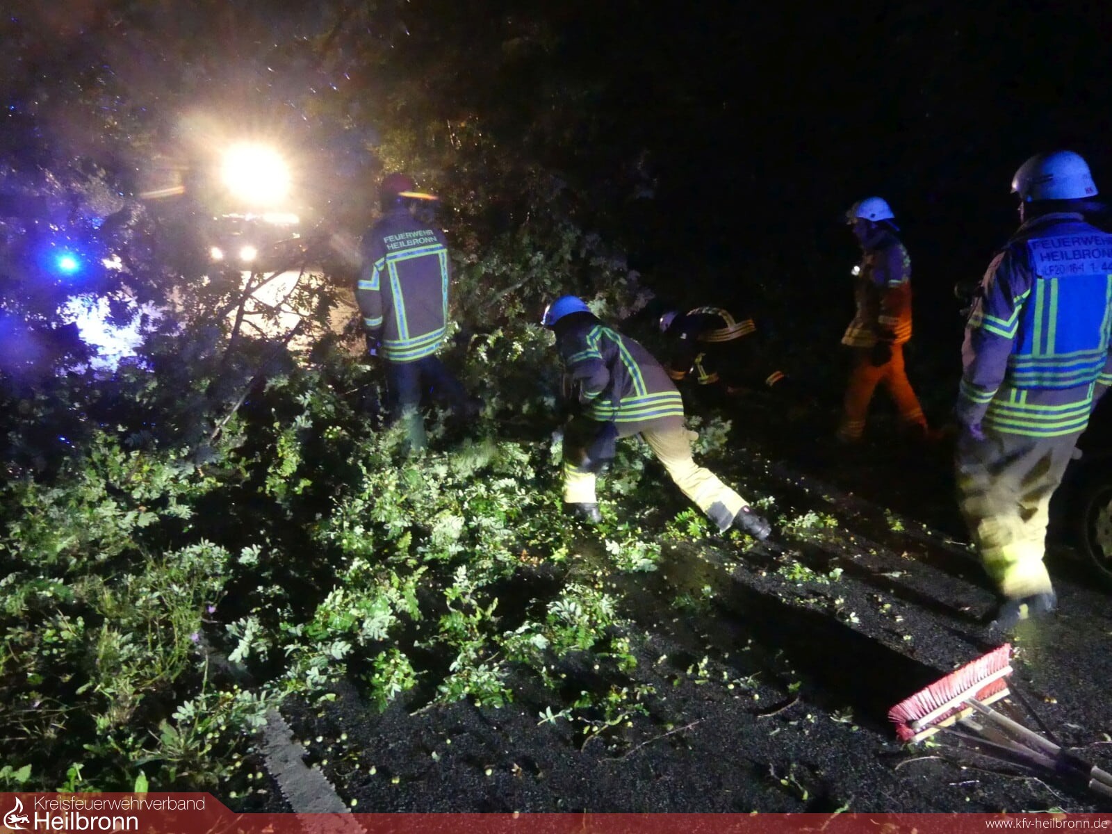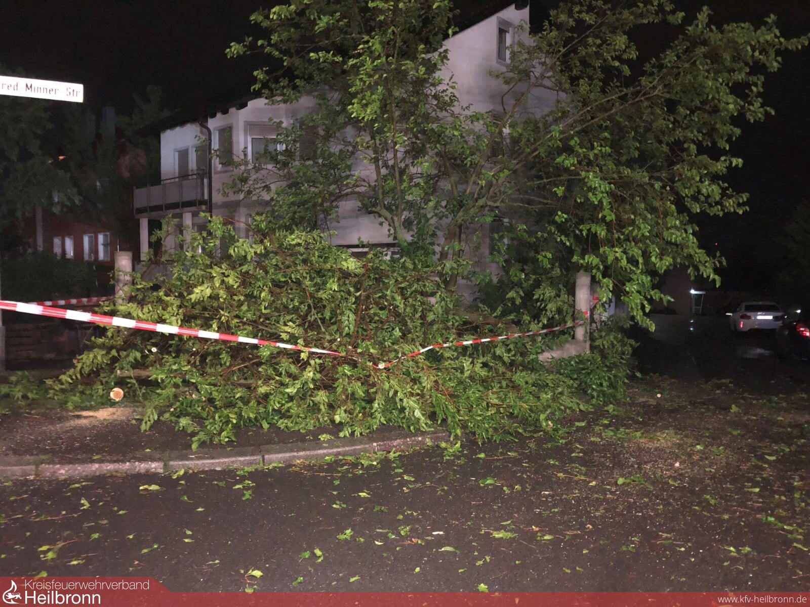 Gegen 21.00 Uhr überzog eine Unwetterfront mit kurzen starken Windböen und ergiebigen Regenschauern die Region Heilbronn. Diese verschaffte der Feuerwehr insgesamt 29 Einsätze im Stadtgebiet. Umgefallene Bäume wie z.B. auf der Neckartalstraße sowie Wasserschäden waren zu beseitigen. Ein umgefallener Baum auf der Zufahrt zum Wartberg hatte die Straße so blockiert, dass kein Durchkommen mehr war. Mehrere Fahrzeuge waren somit auf dem Wartberg eingeschlossen. Die Feuerwehr beseitigte die Barriere und machte die Straße wieder befahrbar.