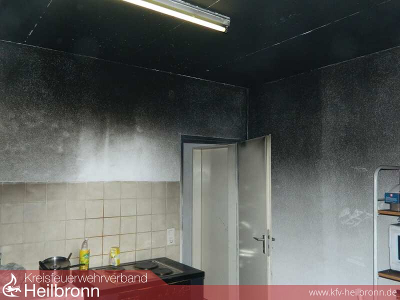 Beim Eintreffen war bereits eine starke Rauchentwicklung aus dem Küchenfenster der Erdgeschosswohnung erkennbar.